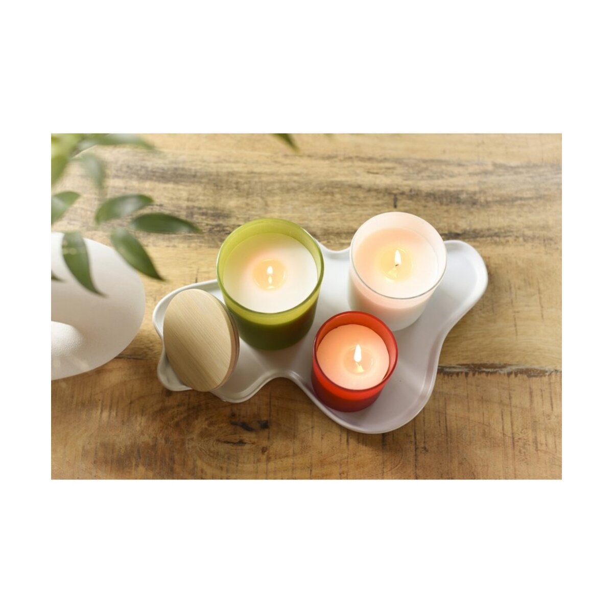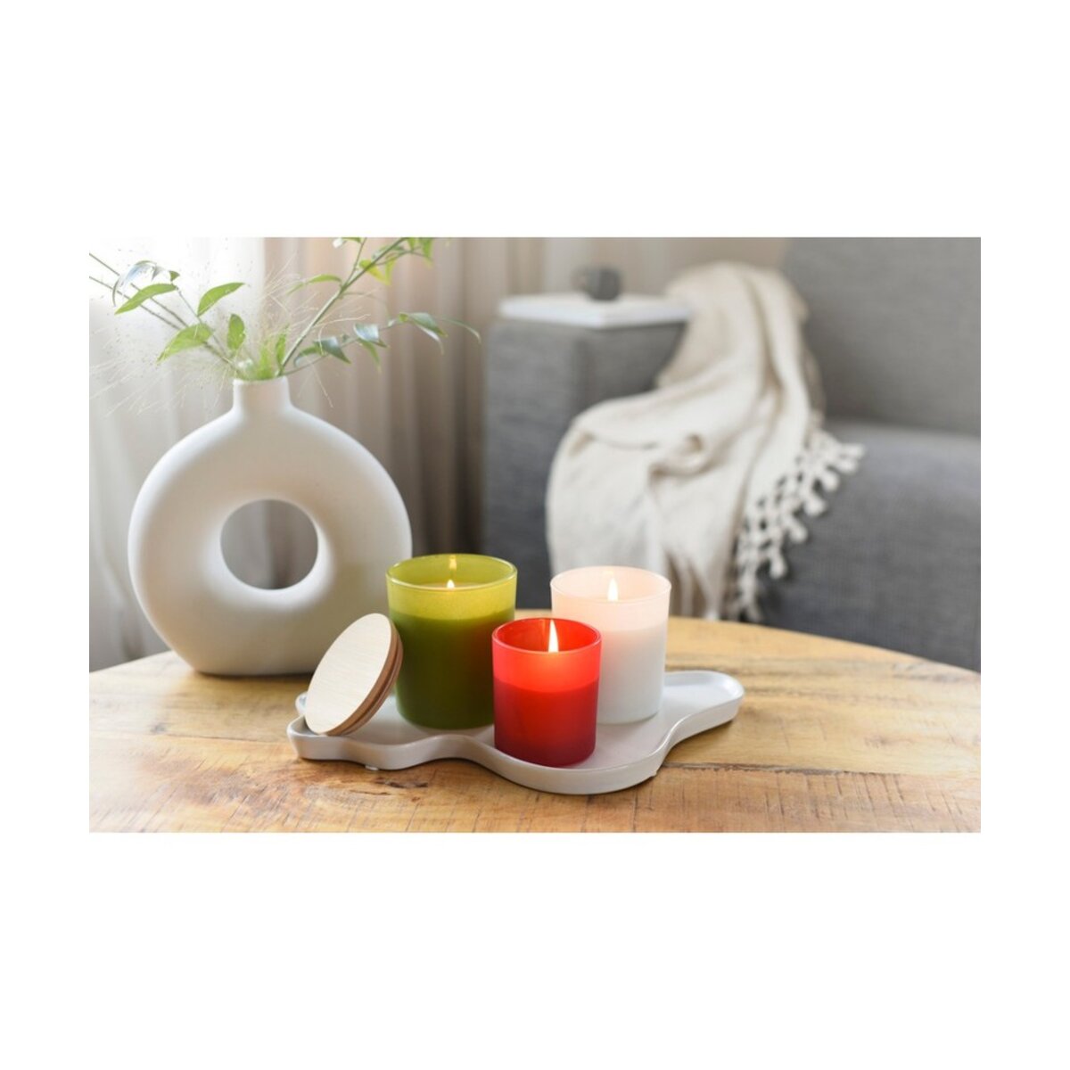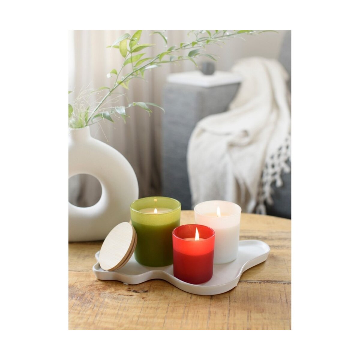 Różnorodność kolorów (biały, czarny, czerwony, zielony) i eleganckie wykonanie sprawiają, że nasza świeczka to doskonyły wybór na prezent. Może być także wykorzystana jako element promocyjny w branży SPA i wellness, hotelarstwie czy jako upominek korporacyjny, który podkreśli dbałość o detale i komfort odbiorcy. Wymiary (Ø9,3 x 12 cm) idealnie wpasowują się w każdą przestrzeń, od biurka po salonowe stoliki.