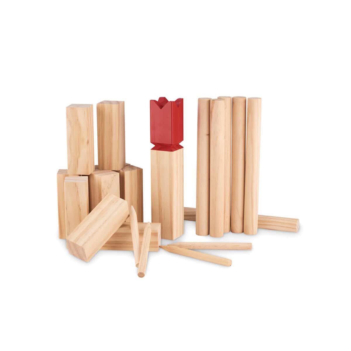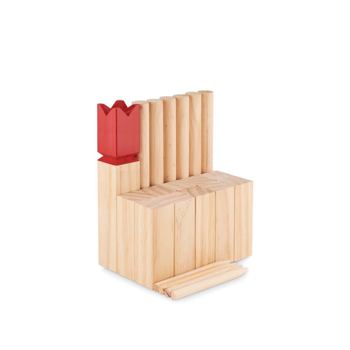 Szachy wikingów Goki KING to niepowtarzalny, inspirowany skandynawską tradycją zestaw do gry plenerowej, który przyciąga wzrok naturalnym wykończeniem i solidnością wykonania. Całość powstała z wytrzymałego drewna sosnowego, a każdy element – od dziesięciu kwadratowych klocków-obrońców po sześć kołków do rzucania i majestatycznego króla – mieści się w praktycznej bawełnianej torbie ze sznurkiem. Taki komplet zachęca do wspólnej zabawy na plaży, w ogrodzie czy podczas eventów integracyjnych, a jednocześnie stanowi efektowny gadżet promujący markę. 🙂