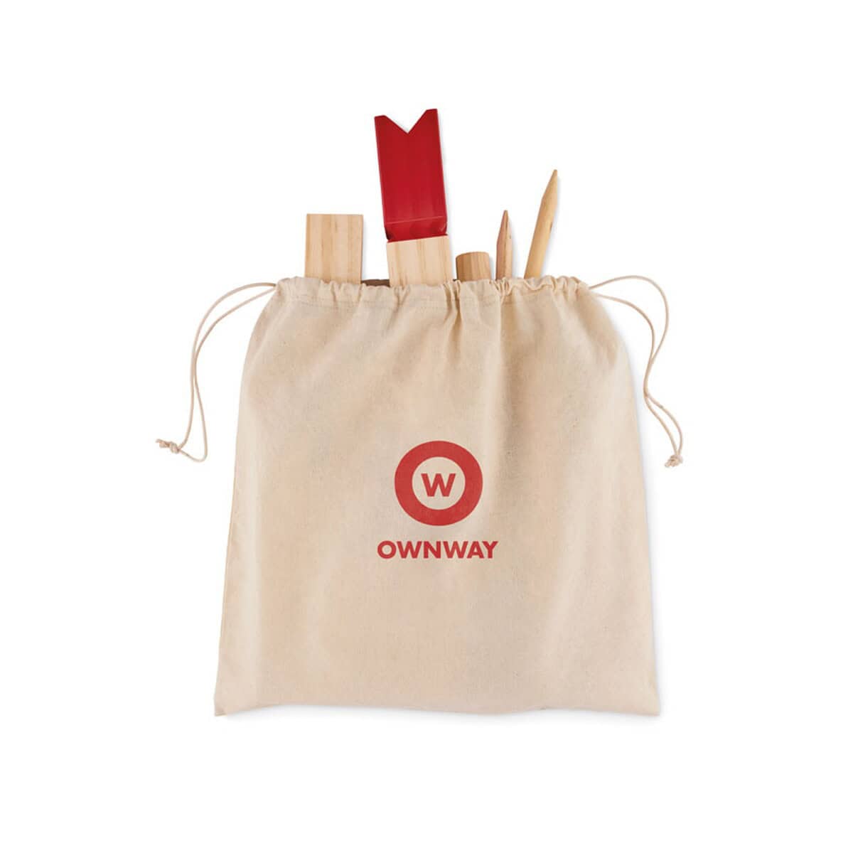 Dzięki gładkim powierzchniom drewna zestaw znakomicie nadaje się pod trwały nadruk. Umieszczone tutaj firmowe logo będzie eksponowane przy każdym rzucie i każdym spojrzeniu graczy oraz widzów, co czyni produkt wysoce reklamowy i w pełni funkcjonalny dla Twojej firmy. Wymiary 34,3×34 cm oraz waga 1,725 kg zapewniają stabilność elementów, a materiał: drewno podkreśla ekologiczny charakter – ogromny atut podczas kampanii CSR czy wydarzeń zrównoważonego rozwoju.