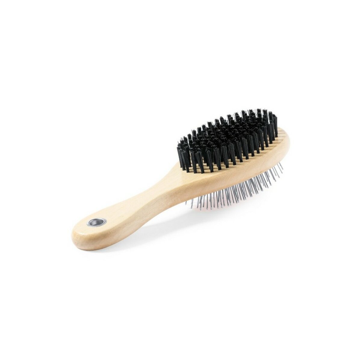 Twoje zwierzę ma swój własny styl i charakter, tak jak Ty. Dlatego przygotowaliśmy dla niego specjalną szczotkę, która zapewni mu odpowiednią pielęgnację i komfort. Szczotka dla zwierząt marki X ma drewnianą rączkę, która jest wygodna w trzymaniu. Na każdej stronie znajduje się inny rodzaj szczotki – jedna dla delikatnego i dokładnego czesania, a druga do usuwania martwego włosa – dzięki temu, szczotka idealnie sprawdzi się do każdego rodzaju włosa.