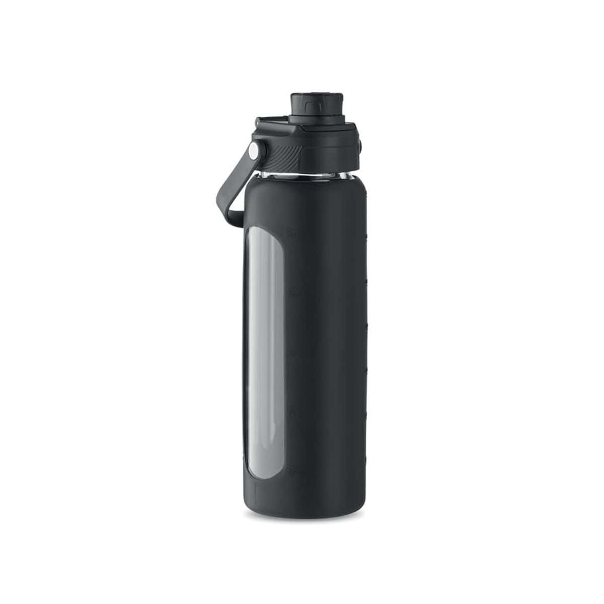 Szklana butelka w etui 750 ml KEILA to nowoczesny, a jednocześnie ponadczasowy gadżet, który wyróżni każdą kampanię promocyjną. Wykonana z odpornego na zmiany temperatury szkła borokrzemowego, z elegancką silikonową osłoną w klasycznym, czarnym kolorze, zachwyca zarówno designem, jak i funkcjonalnością. Jej poręczny rozmiar ø7×26 cm oraz optymalna pojemność 750 ml sprawiają, że znakomicie sprawdzi się w codziennym użytkowaniu w biurze, na treningu czy w podróży 😊.