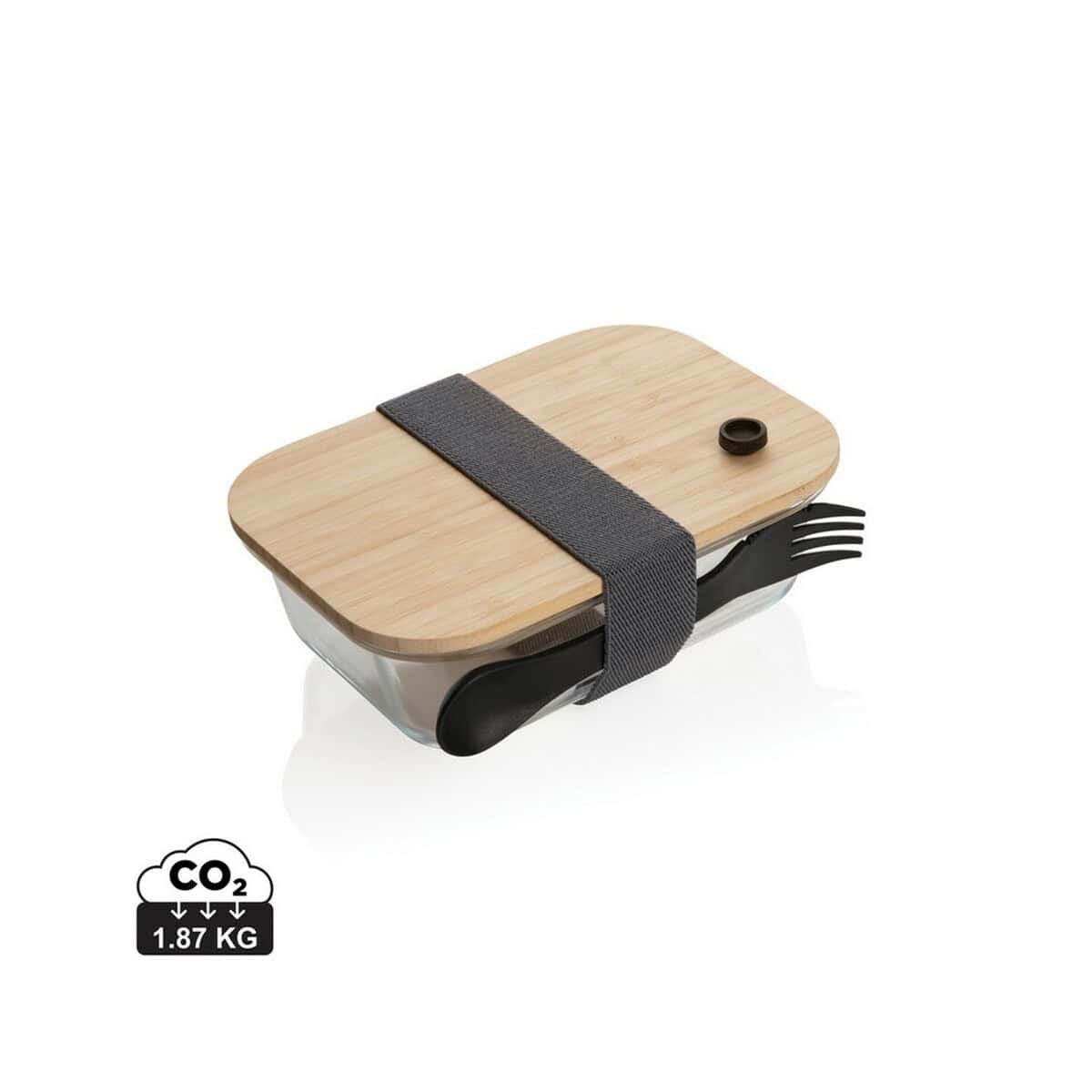 Szklany pojemnik na żywność świetnie sprawdzi się w branży dietetycznej, cateringowej, fitness czy w studiach jogi jako estetyczny upominek z logo. Dzięki dużej, gładkiej powierzchni szkła i bambusu możesz dodać trwały nadruk, tworząc wyjątkowy prezent reklamowy, który codziennie przypomina o Twojej marce. Produkt idealnie pasuje również do kampanii ekologicznych – jego niski ślad węglowy 1,87 kg CO₂ podkreśla świadomą troskę o środowisko.