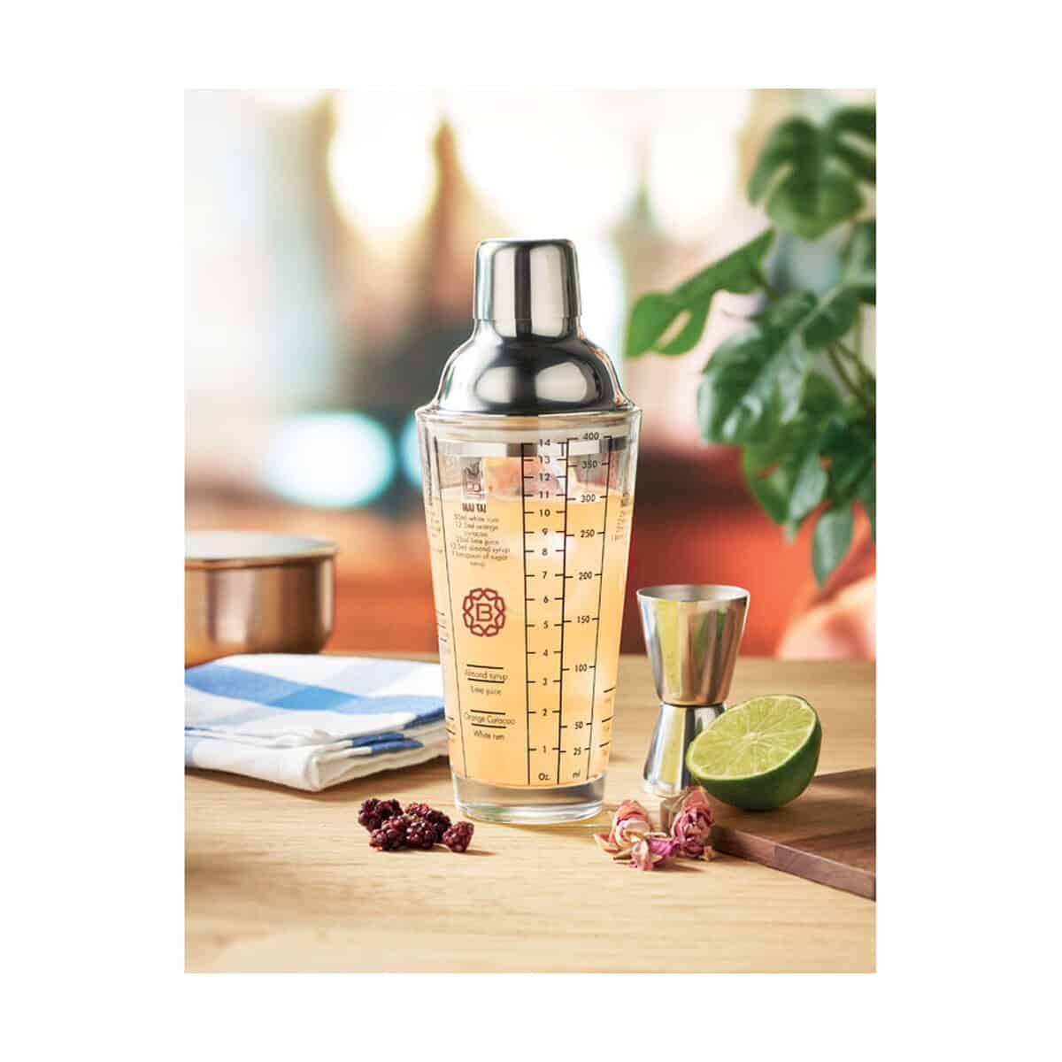 Jego pojemność 400 ml pozwala na komfortowe miksowanie zarówno klasycznych koktajli, jak i autorskich kompozycji. Kompaktowe wymiary ø8 × 21 cm zapewniają wygodny chwyt, a masa 0,565 kg gwarantuje stabilność podczas energicznego wstrząsania. Wysokiej jakości materiał: szkło pozostaje neutralny dla smaku, a pokrywka ze stali nierdzewnej nie koroduje nawet przy intensywnym użytkowaniu. Transparentny kolor dodaje lekkości i pozwala obserwować proces mieszania napoju.
