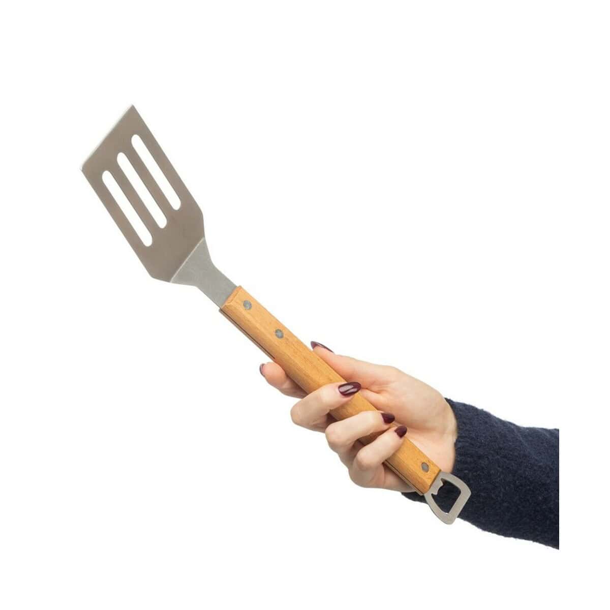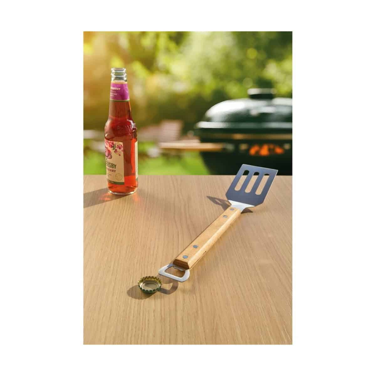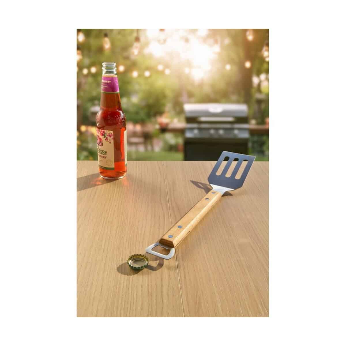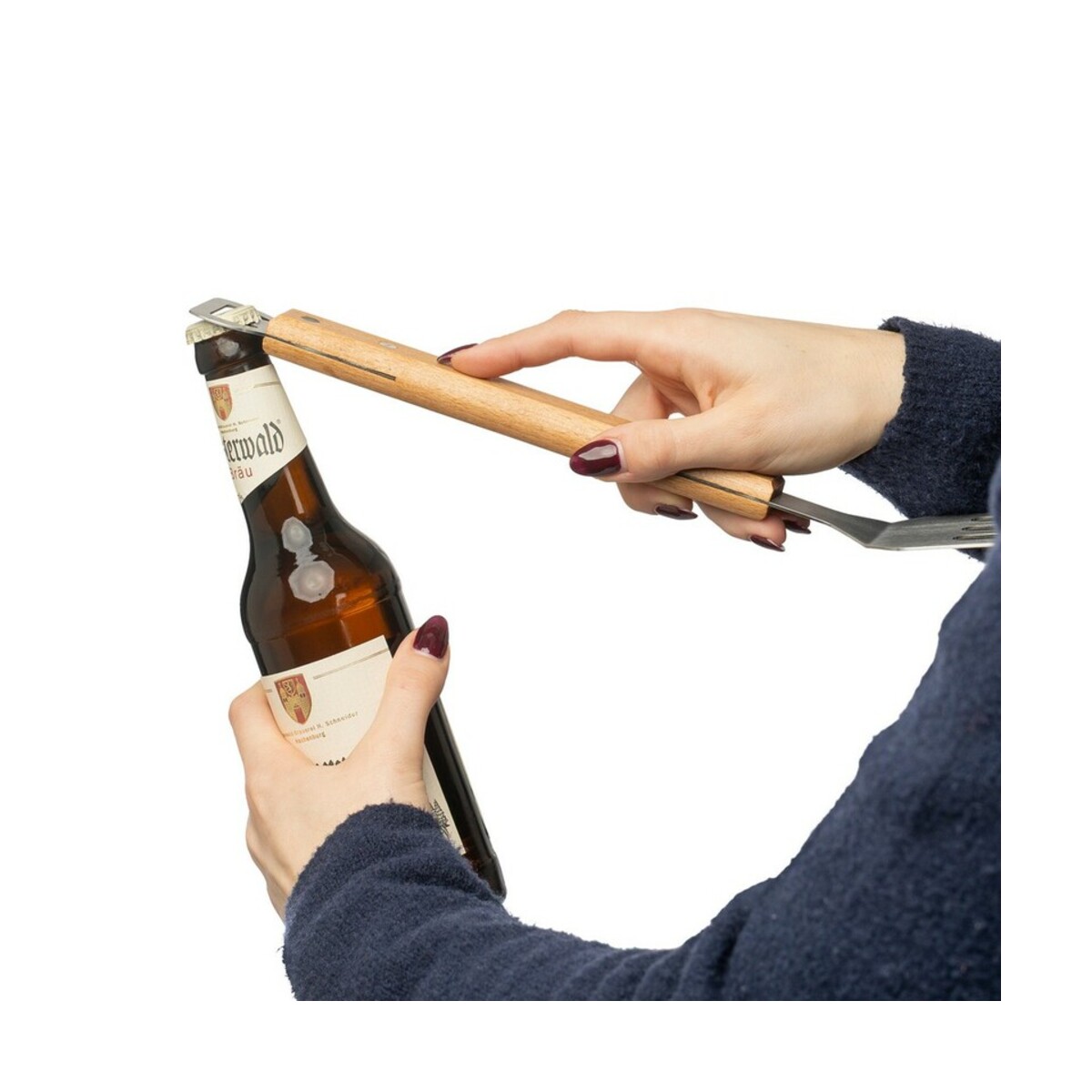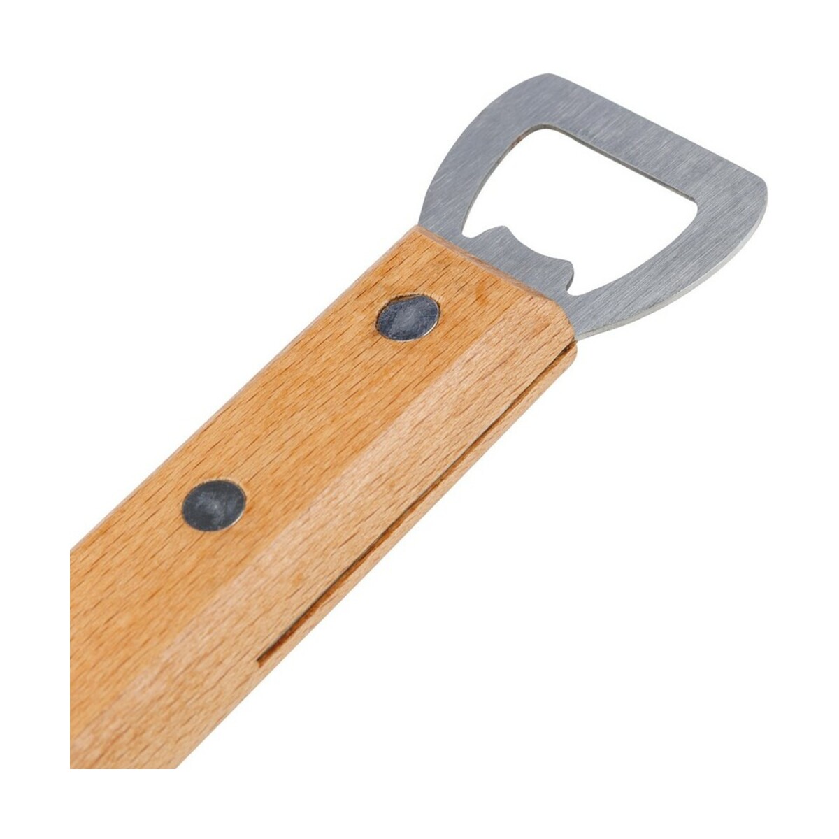 Produkt wykonano z wysokogatunkowej stali nierdzewnej 430/410 oraz przyjemnego w dotyku drewna bukowego. Funkcjonalność podnosi wbudowany otwieracz do butelek, dzięki czemu jedno narzędzie zastępuje dwa. Kompaktowe wymiary: 3,6 × 7,2 × 1,6 cm oraz praktyczna waga: 151,9 g sprawiają, że akcesorium jest lekkie, a zarazem wytrzymałe. Naturalny, brązowy odcień trzonu podkreśla jego ekologiczny charakter, a indywidualne nadruk lub logo doda prestiżu marce. Całość pakowana jest w estetyczne papierowe pudełko, gotowe do wręczenia jako prezent 🎁.