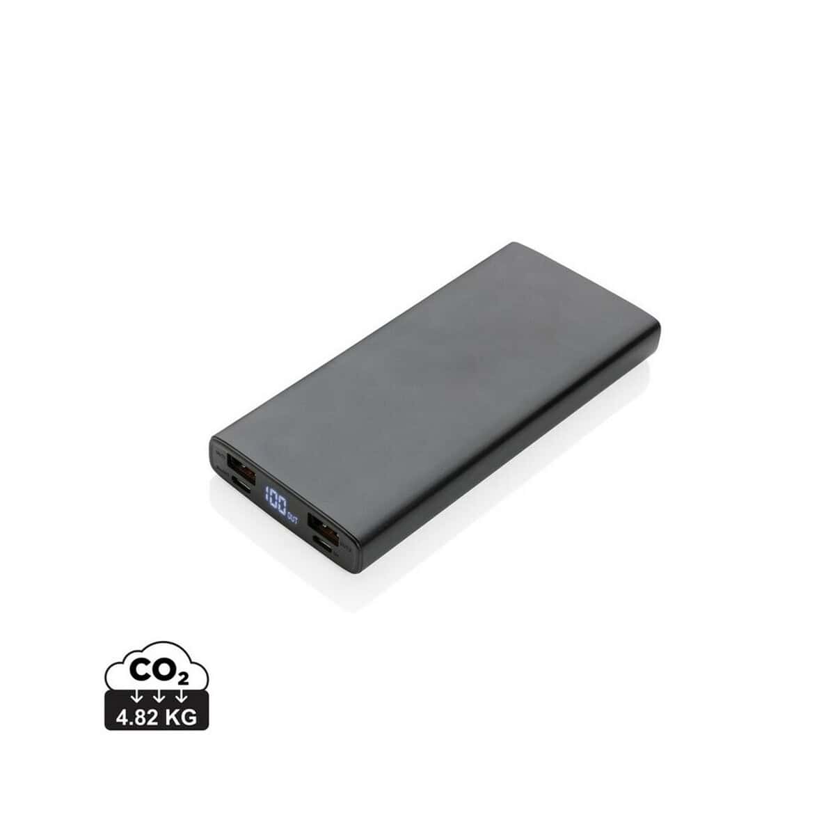 Urządzenie posiada wejścia micro USB 5 V/2 A oraz USB-C 5 V/3 A, 9 V/2 A, 12 V/1,5 A, a także podwójne wyjścia USB-C i USB-A 18 W max, co pozwala ładować dwa urządzenia jednocześnie. W zestawie znajdziesz ekologiczny kabel micro USB wykonany z TPE wolnego od PVC. Niski ślad węglowy 4,82 kg CO₂ podkreśla troskę o środowisko – szczególnie docenią to marki stawiające na zrównoważony rozwój.