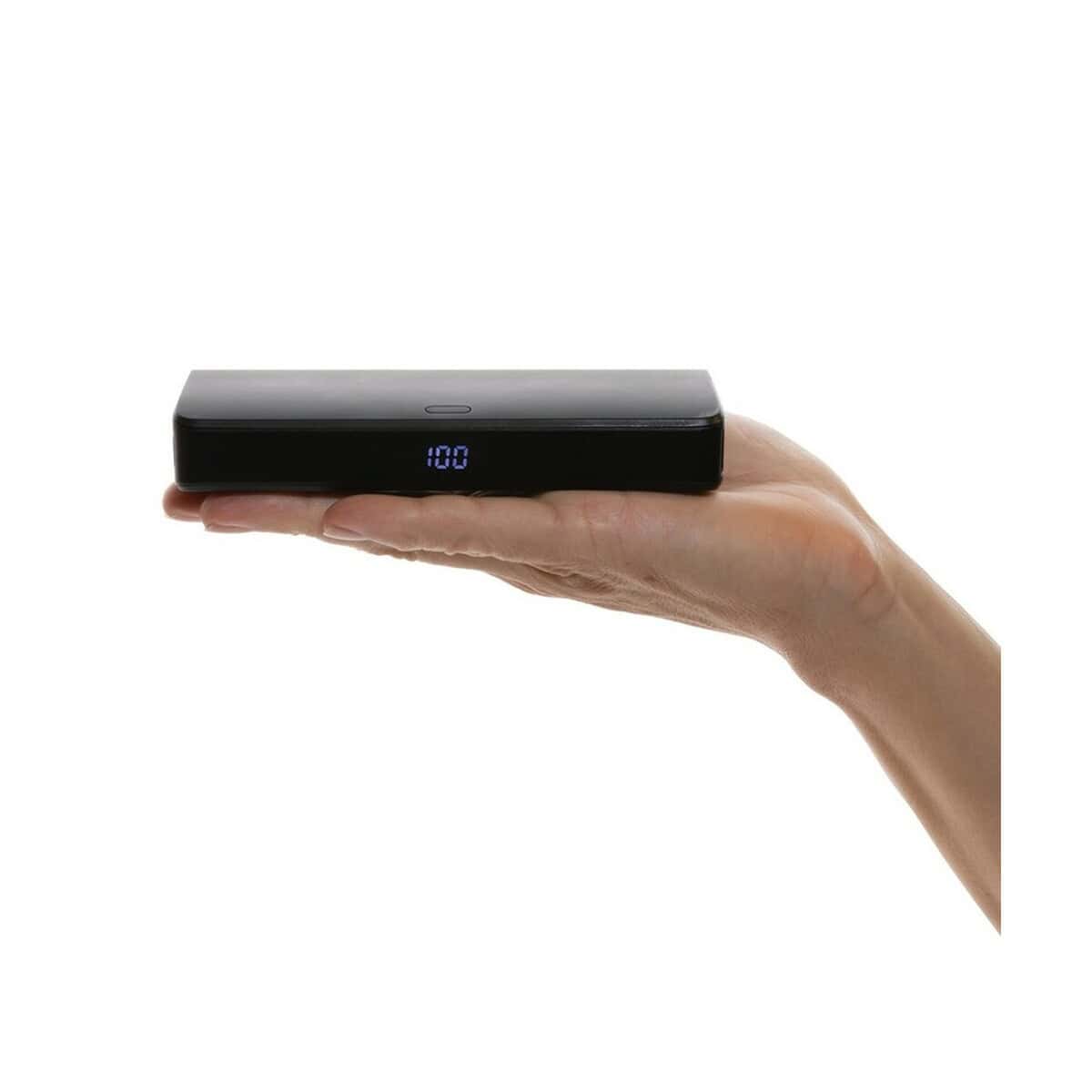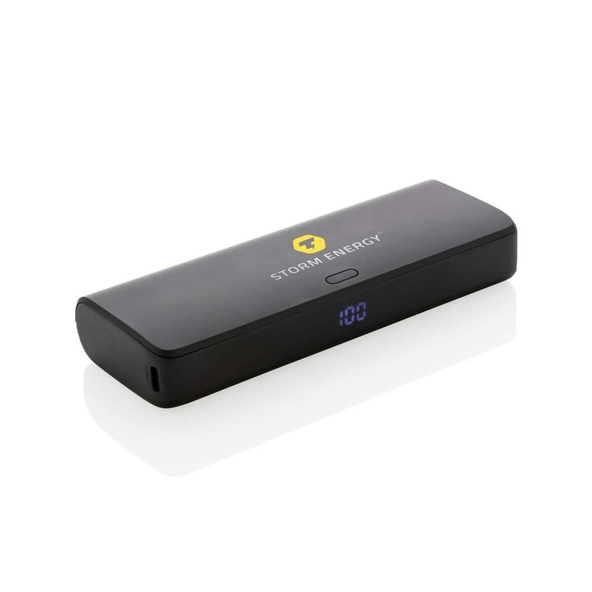 Urządzenie wyróżnia wyświetlacz LED, który na bieżąco pokazuje poziom naładowania, a obudowa z ABS z recyklingu (certyfikat RCS, udział materiału z odzysku 20%) podkreśla odpowiedzialny charakter produktu – jego ślad węglowy to zaledwie 0 kg CO₂. Zastosowany materiał rABS jest przyjemny w dotyku i odporny na zarysowania, co czyni ten model niezwykle trwałym.