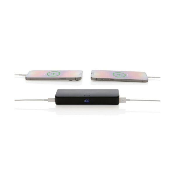 Szybki power bank 20000 mAh FlashCharge jest wyposażony w baterię o pojemności 20000 mAh i moc ładowania przewodowego 20W, co umożliwia szybkie naładowanie wielu urządzeń, takich jak smartfony, tablety czy słuchawki bezprzewodowe. Dodatkowo, wyświetlacz LED dostarcza niezbędnych informacji na temat poziomu naładowania urządzenia, co jest niezwykle praktycznym rozwiązaniem.
