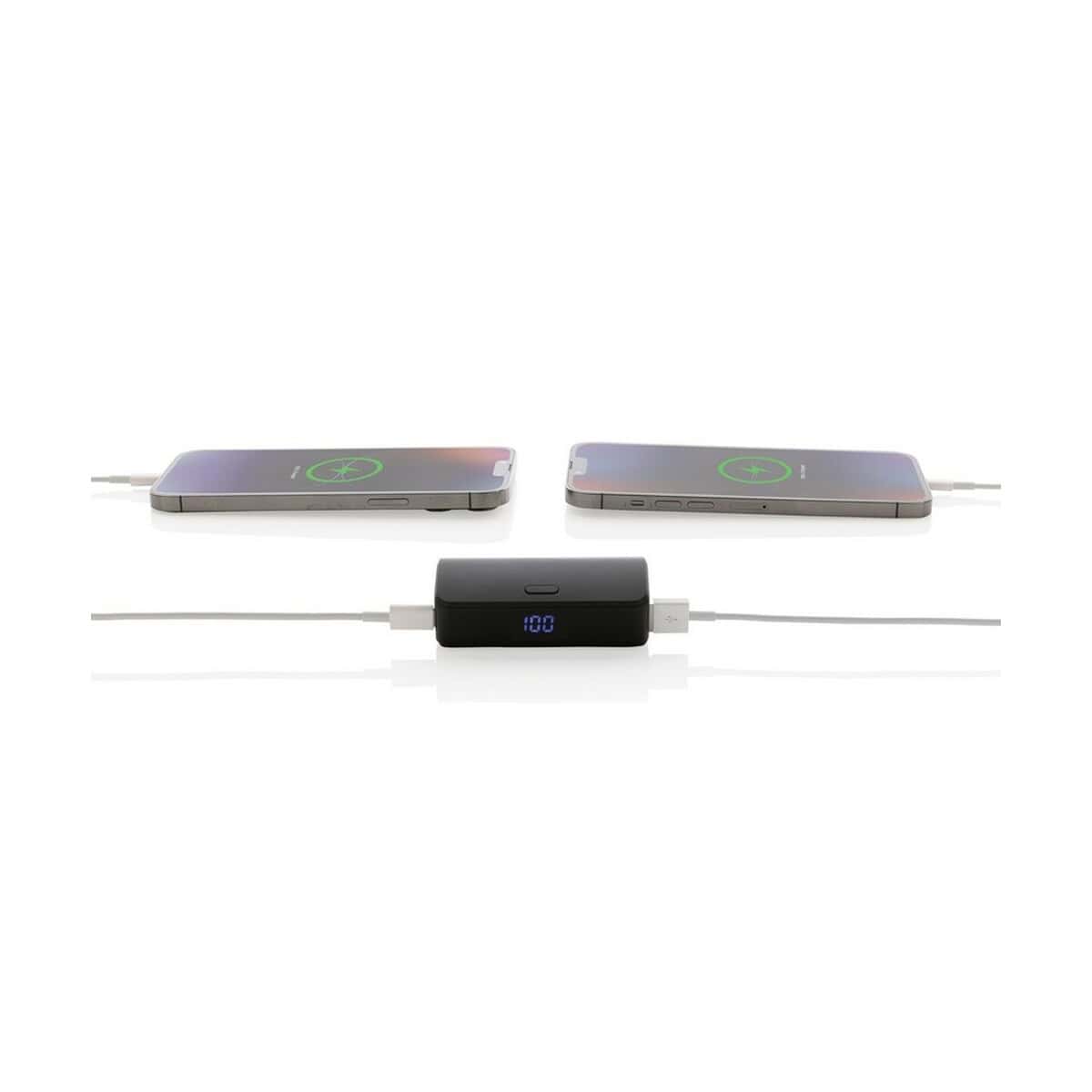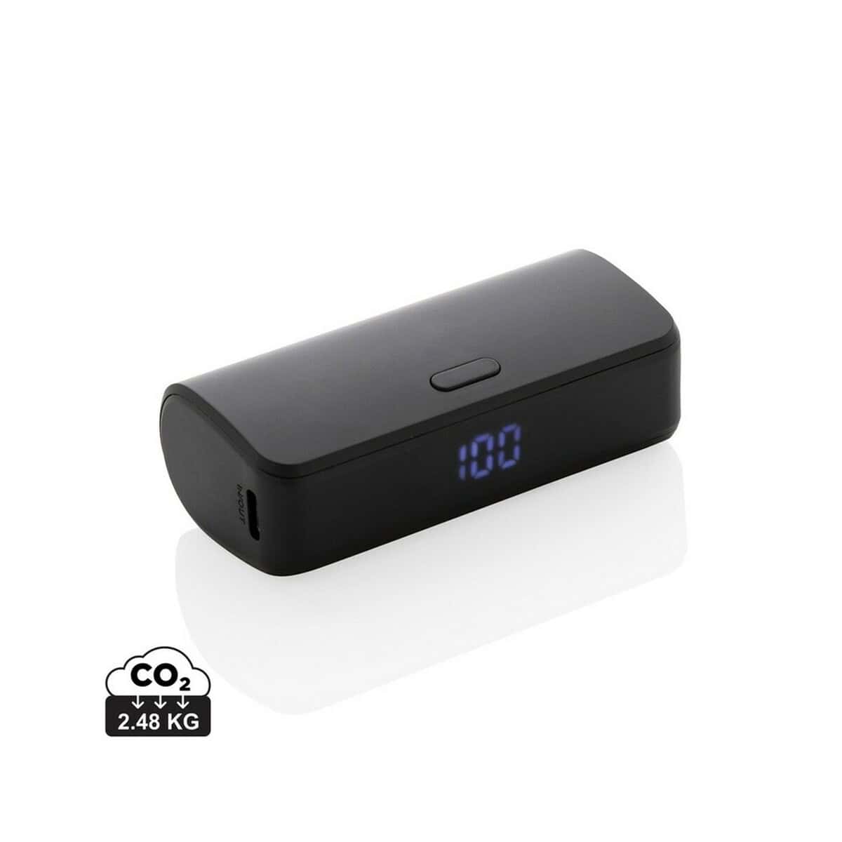 Szybki power bank 5000 mAh FlashCharge, RABS to wszechstronny, ekologiczny gadżet, który z łatwością zasili smartfony, słuchawki czy kamerki sportowe w każdej podróży 🚀. Jego pojemność 5000 mAh oraz szybkie ładowanie 20 W poprzez port USB-C sprawiają, że urządzenia odzyskują energię w mgnieniu oka. Wykonanie z ABS z recyklingu z certyfikatem RCS, a także ślad węglowy wynoszący 0 kg CO₂ to gwarancja, że Twój upominek jest przyjazny środowisku. Kompaktowe wymiary 78,9 × 25,8 × 38 cm oraz elegancki czarny kolor czynią go niezwykle poręcznym i estetycznym.
