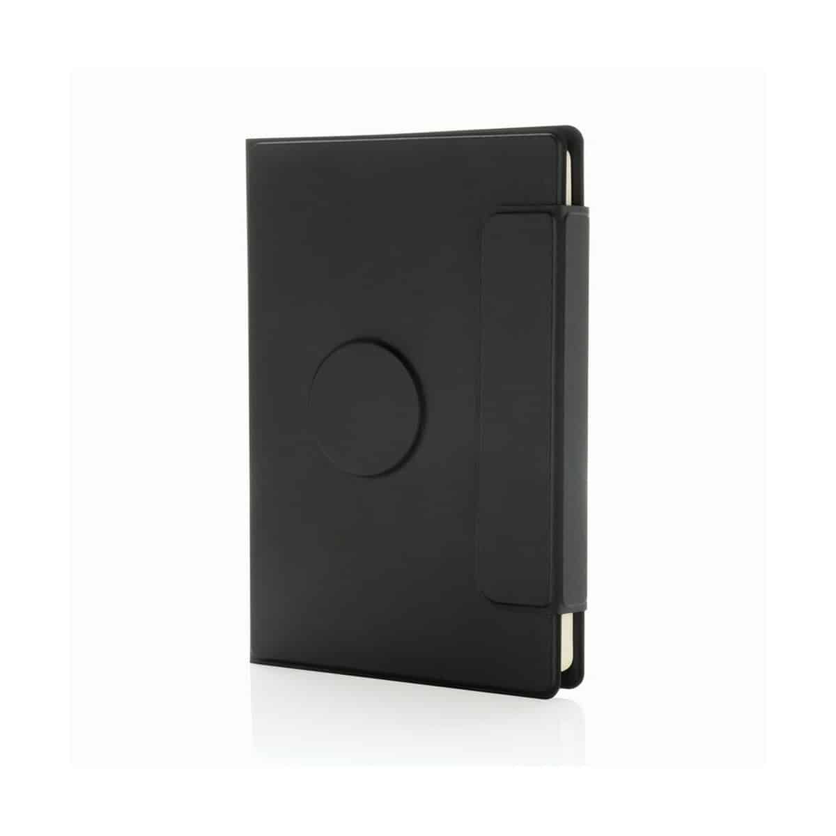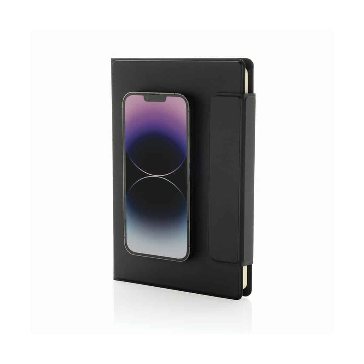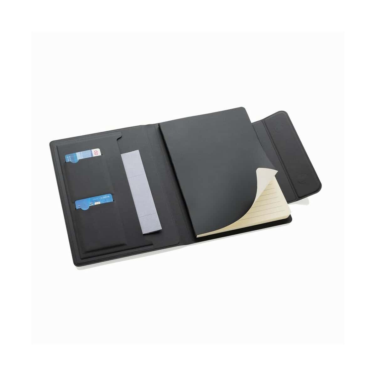 Model ten oferuje szereg praktycznych rozwiązań: uchwyt na telefon kompatybilny z MagSafe (iPhone 12 i wyższe) pozwala ładować urządzenie lub prowadzić wideokonferencje bez wyjmowania sprzętu z teczki, a magnetyczne zamknięcie gwarantuje bezpieczeństwo dokumentów. W środku znajdziesz notatnik A5 w linie, 64 kremowe kartki/128 stron, 80 g/m², certyfikat FSC® – po wypisaniu można go łatwo wymienić, co czyni produkt jeszcze bardziej funkcjonalnym. Dodatkowo umieszczono kieszeń na dokumenty oraz 2 miejsca na wizytówki, dzięki czemu wszystkie drobiazgi pozostają perfekcyjnie uporządkowane.