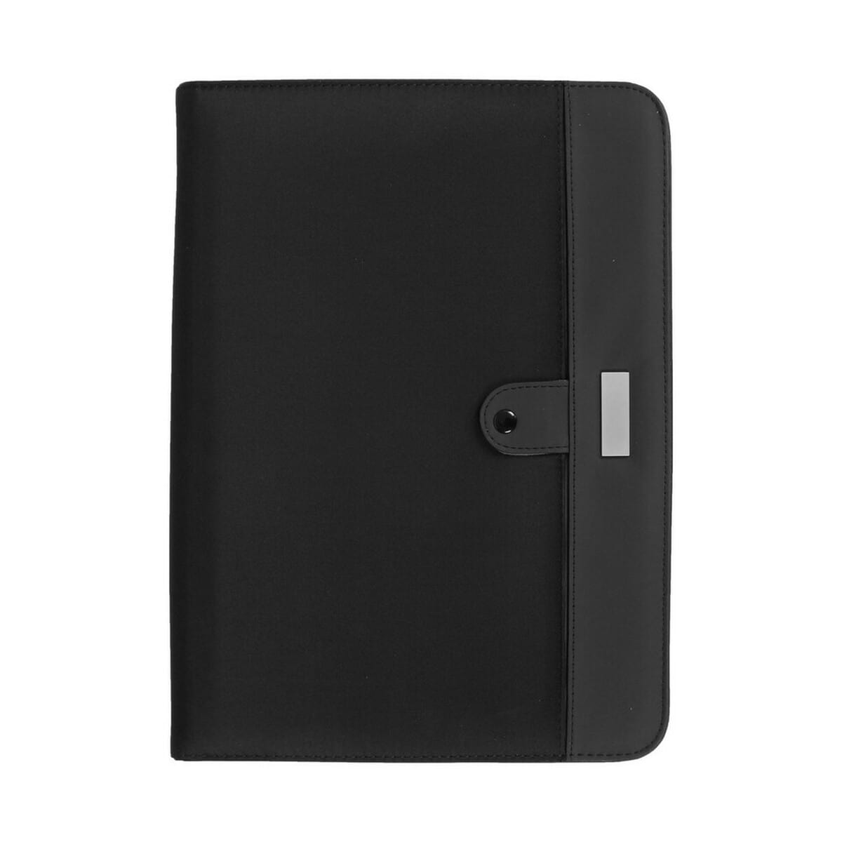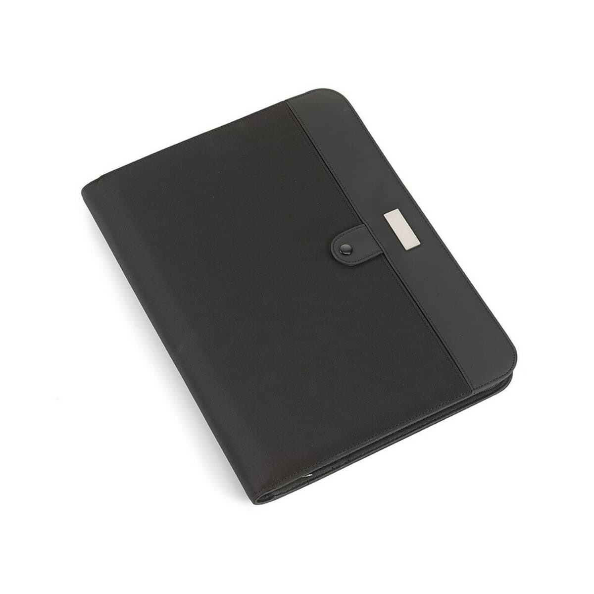 Cechy produktu: wymiary 36,4 × 27,7 × 2,8 cm, waga 906 g, materiał metal + mikrofibra, kolor czarny. Każda teczka może zostać spersonalizowana przez trwały nadruk lub tłoczenie, dzięki czemu staje się mobilną wizytówką dla Twojej firmy. Umieść logo na froncie i podkreśl swój charakter marki na każdym szkoleniu i prezentacji!