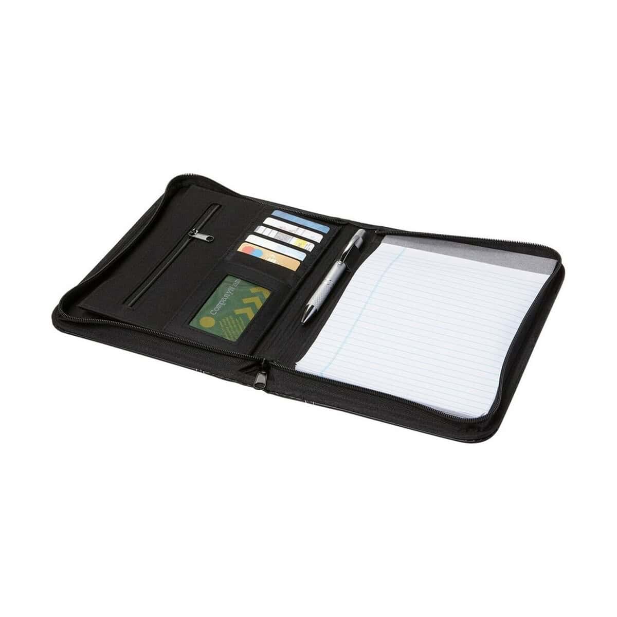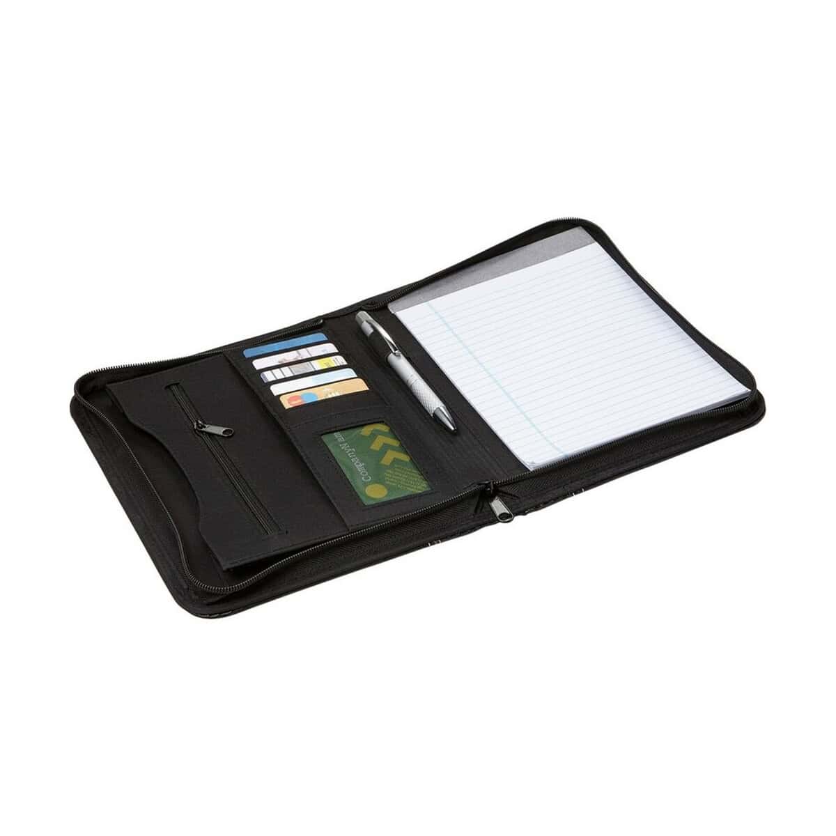 Teczka konferencyjna ok. A5 z notatnikiem to nieocenione wsparcie w biznesowej codzienności. Ten elegancki gadżet w kolorze głębokiej czerni stworzono z trwałej skóry ekologicznej PU, microfibry oraz PVC, by przez lata prezentował się nienagannie i podkreślał prestiż Twojej marki 😊. Dzięki możliwości umieszczenia logo w formie subtelnego nadruku, zyskujesz produkt w pełni reklamowy, który wyróżni się na każdym spotkaniu.