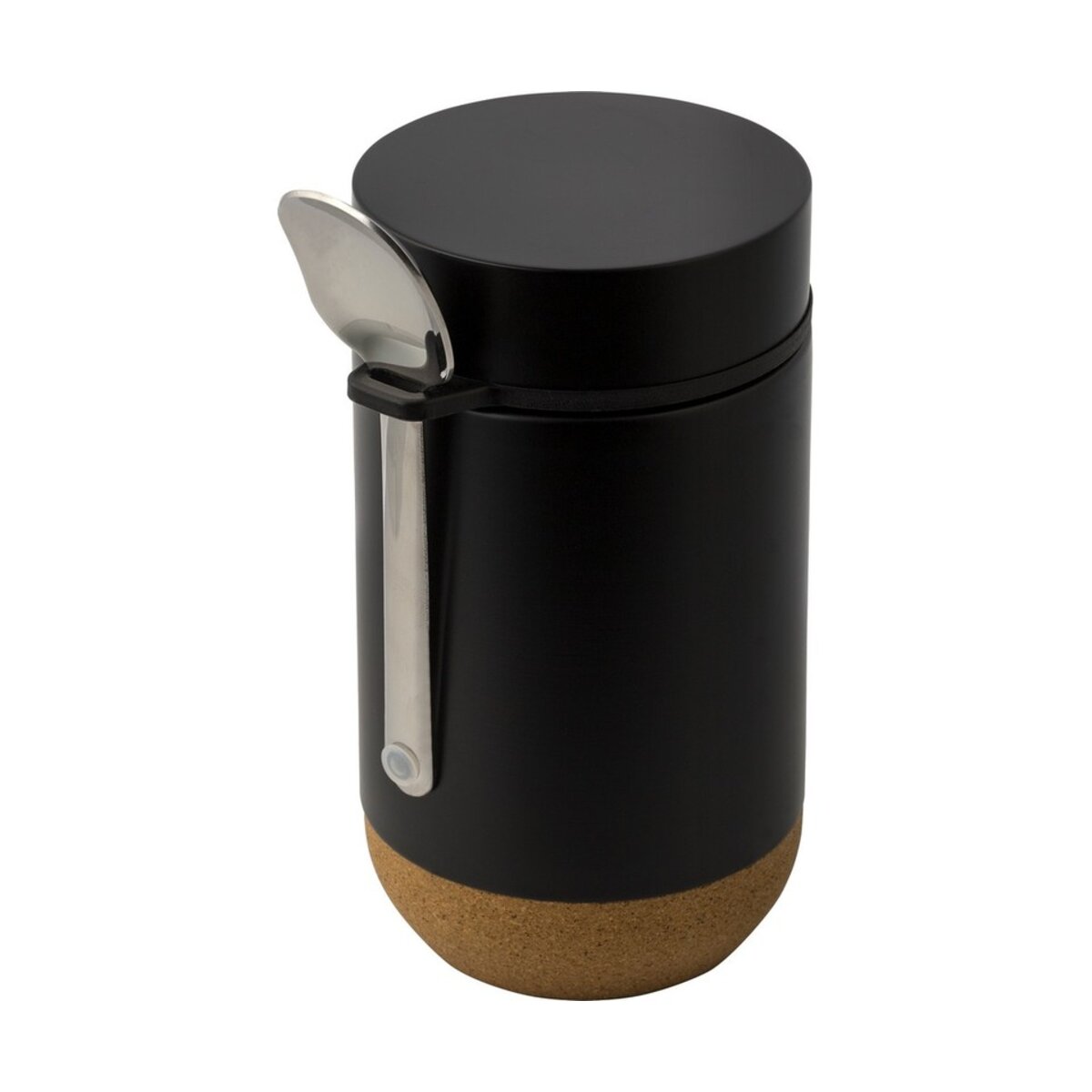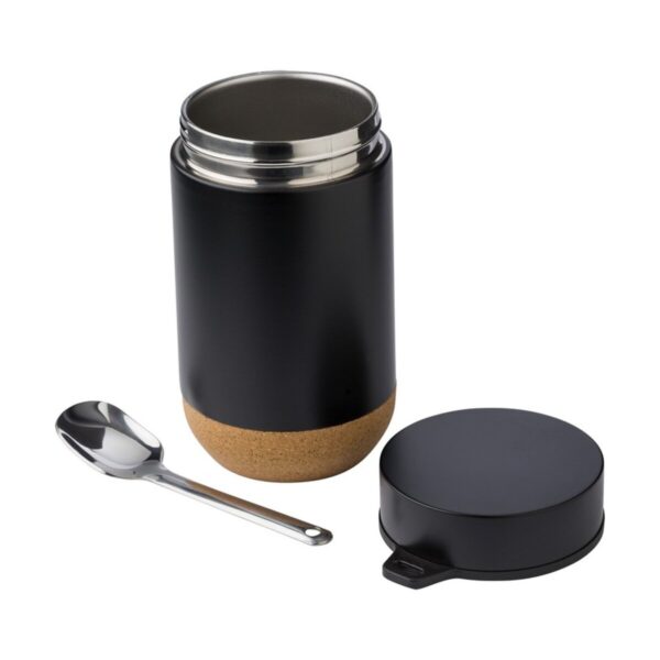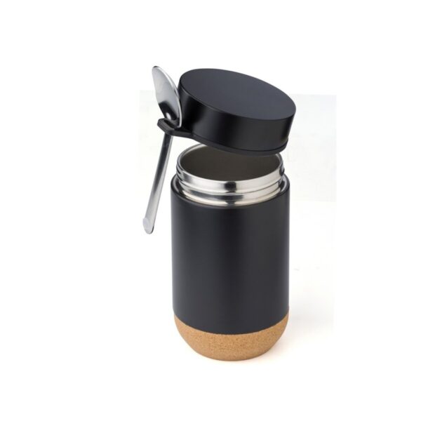 Pojemnik posiada podwójne ścianki ze stali nierdzewnej, dzięki czemu doskonale utrzymuje temperaturę zarówno gorących, jak i zimnych potraw. Dodatkowo wyposażenie w korkowy element podkreśla naturalny i ekologiczny charakter produktu, jednocześnie zapewniając skuteczną izolację termiczną. Do pojemnika dołączona jest także łyżka ze stali nierdzewnej, którą można łatwo przechowywać przykrywką, co czyni go jeszcze bardziej funkcjonalnym.