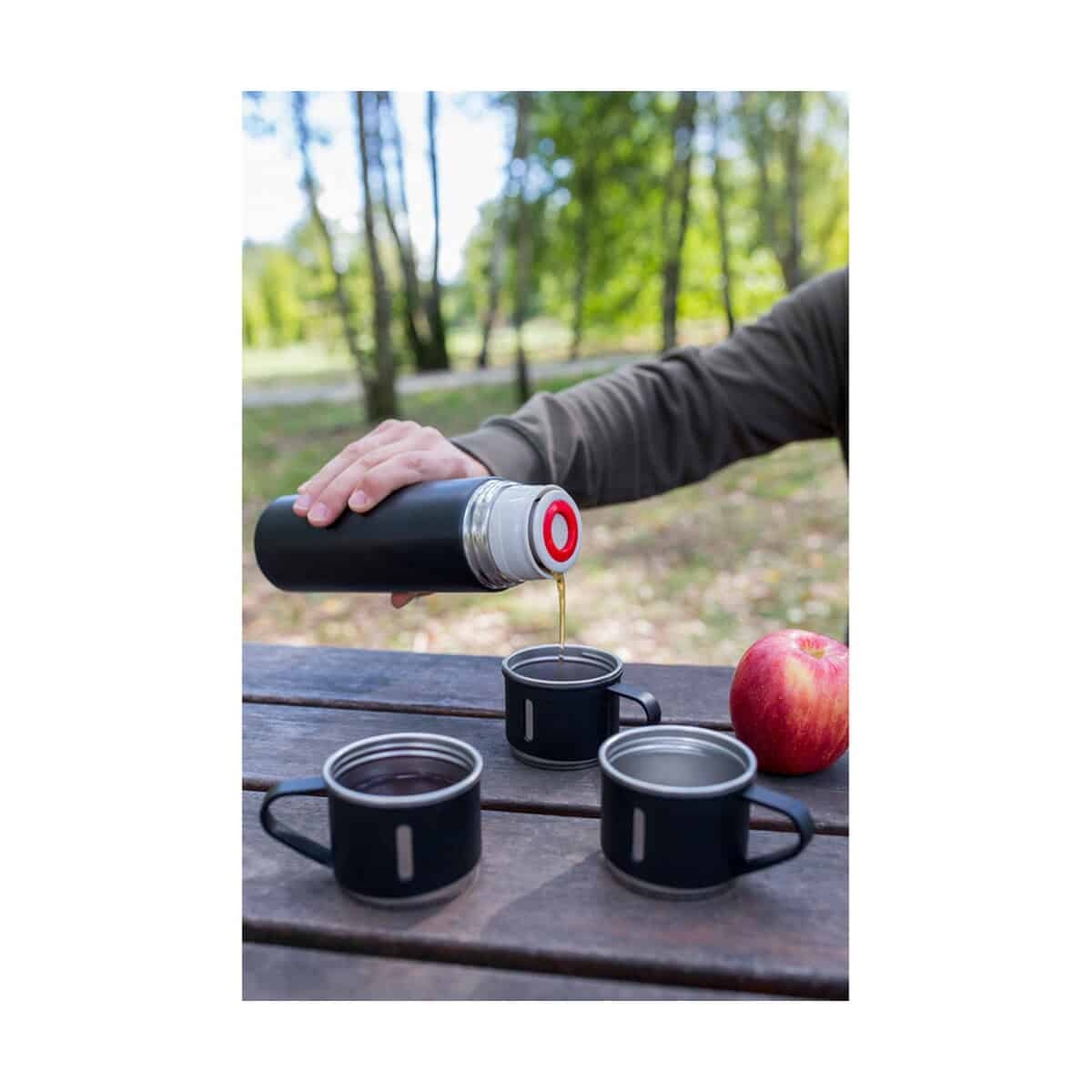 Solidne wykonanie, klasa termiczna A oraz technologia leakproof gwarantują pełną szczelność, dlatego zestaw sprawdzi się zarówno podczas górskiej wyprawy, jak i w biurze. Matowa, czarna powierzchnia ze stali nierdzewnej nadaje elegancki charakter i stanowi znakomite tło pod logo czy wyraźny nadruk. Właśnie dlatego produkt jest doskonałym wyborem jako gadżet reklamowy dla branży turystycznej, outdoorowej, sportowej, logistycznej, a także dla firm zajmujących się cateringiem i kawą na wynos. Umieszczenie Twojego logo przemieni zwykły termos w efektowne narzędzie promocji, które pracownicy i klienci będą chętnie zabierać ze sobą.