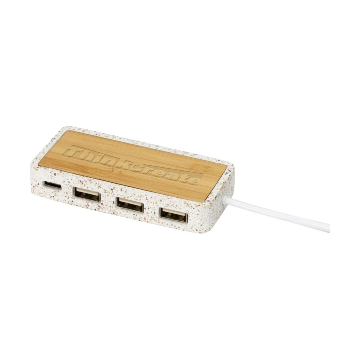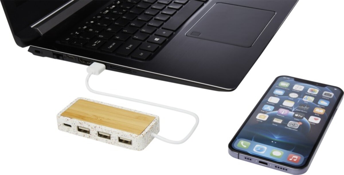 Ten wyjątkowy koncentrator USB 2.0 to połączenie naturalnego lastryko i bambusa, które wyglądają i czują się wyjątkowo. Idealny do wszelkich zastosowań, zawiera 1 wyjście USB typu C i 3 wyjścia USB-A. Został dostarczony w eleganckim, ekologicznym pudełku upominkowym z instrukcją obsługi, także wykonaną z materiałów ekologicznych.