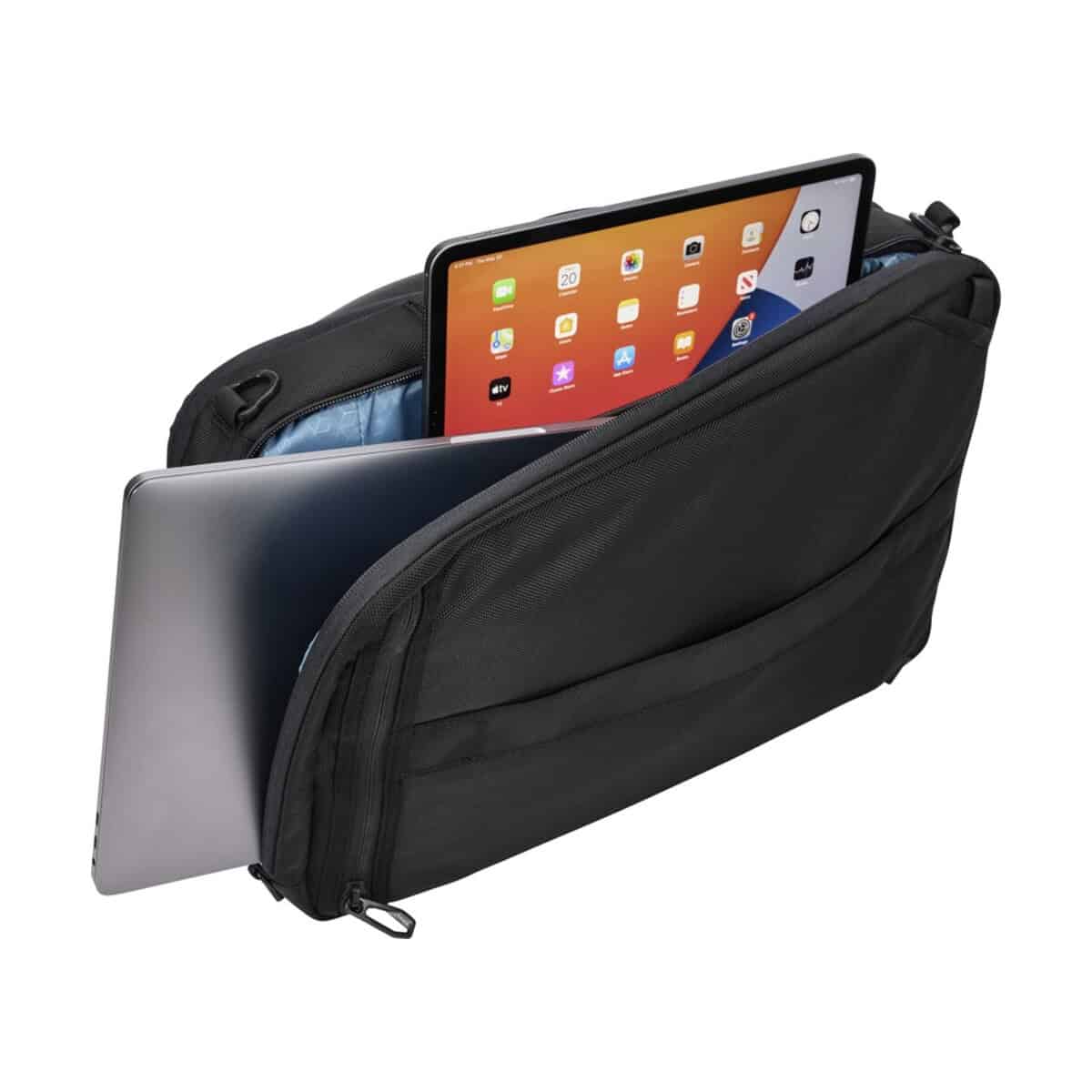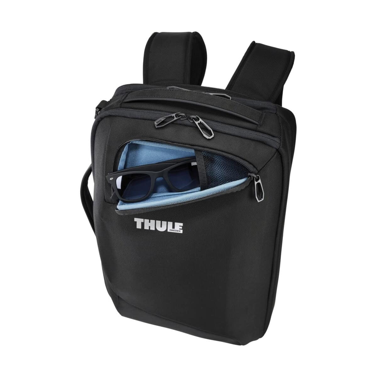 Thule Accent wielozadaniowy plecak 17 l to prawdziwie wielofunkcyjny gadżet, który z łatwością przeobraża się z eleganckiej teczki w wygodny plecak, spełniając oczekiwania najbardziej wymagających użytkowników 🙂 Jego sercem są dedykowane przegrody na 16-calowy laptop MacBook® lub 15,6-calowy komputer PC oraz 10,5-calowy tablet, dzięki czemu sprzęt pozostaje bezpieczny zarówno w podróży służbowej, jak i w drodze na spotkanie biznesowe. Wymiary 44 × 29 × 17 cm, zaskakująca lekkość – 1097 g – oraz wytrzymały, w 100% przetworzony materiał 1680D czynią z tego modelu rozwiązanie wręcz doskonałe do codziennego przemieszczania się w miejskiej dżungli.