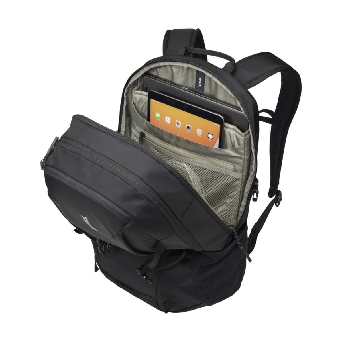 Wszechstronny plecak inspirowany stylem outdoorowym to idealne rozwiązanie dla miłośników aktywnego stylu życia. Wyposażony w wiele przydatnych funkcji, zapewnia wygodne przechowywanie w podróży. Wyściełana kieszeń na 16-calowy laptop MacBook® lub 15,6-calowy komputer PC oraz tablet 10,5-calowy zapewnia bezpieczne przenoszenie sprzętu. Dodatkowa komora pozwala na przechowanie ubrań, akcesoriów lub innych przedmiotów osobistych, a panel służy do organizacji mniejszych akcesoriów. Plecak posiada także pasek piersiowy, wyściełany tylny panel z kanałem przepływu powietrza i boczne paski kompresyjne, aby zrównoważyć obciążenie, dzięki czemu jest wygodny w noszeniu. Wykonany z zatwierdzonego przez Bluesign® nylonu 400D z zamkami YKK, plecak jest trwały i wytrzymały.