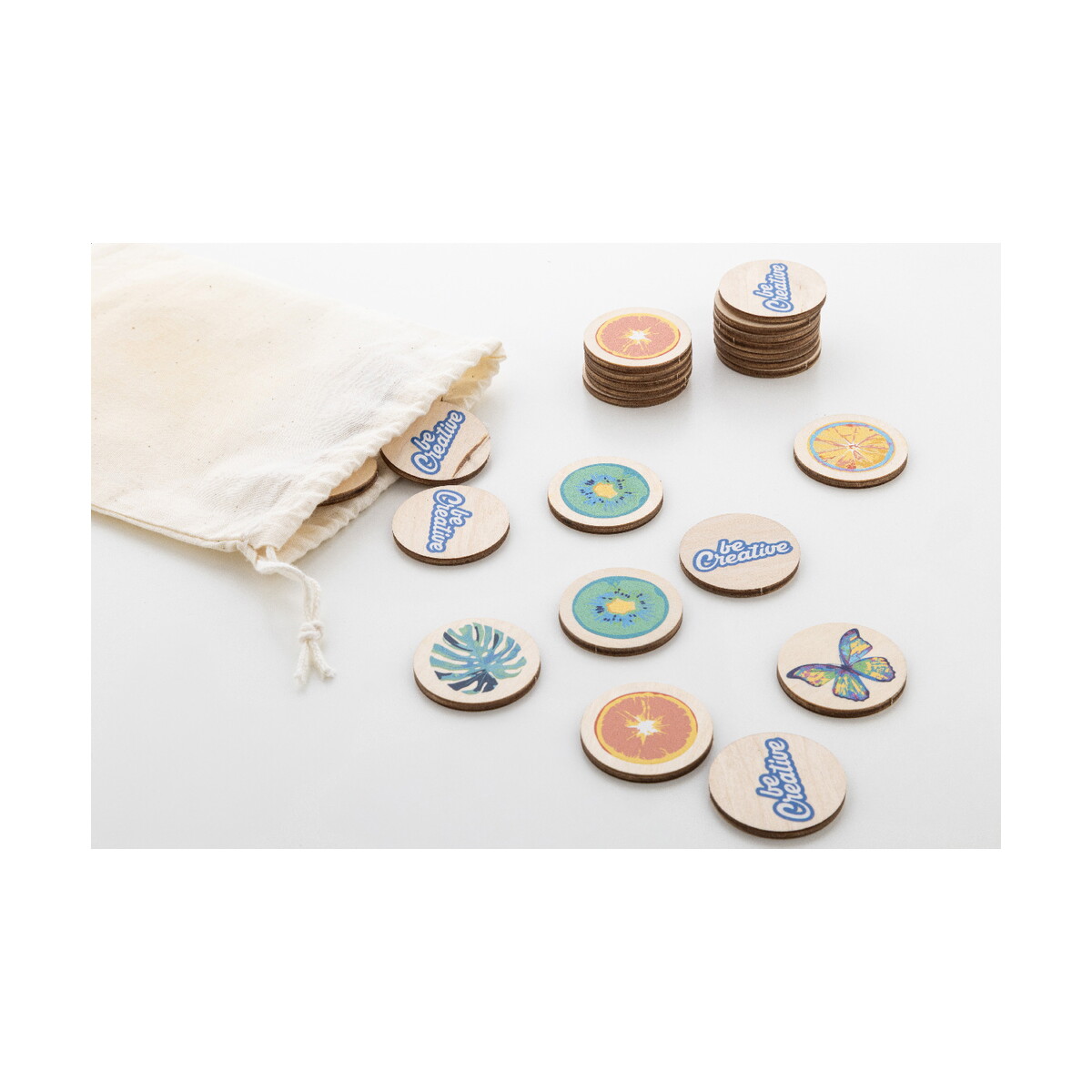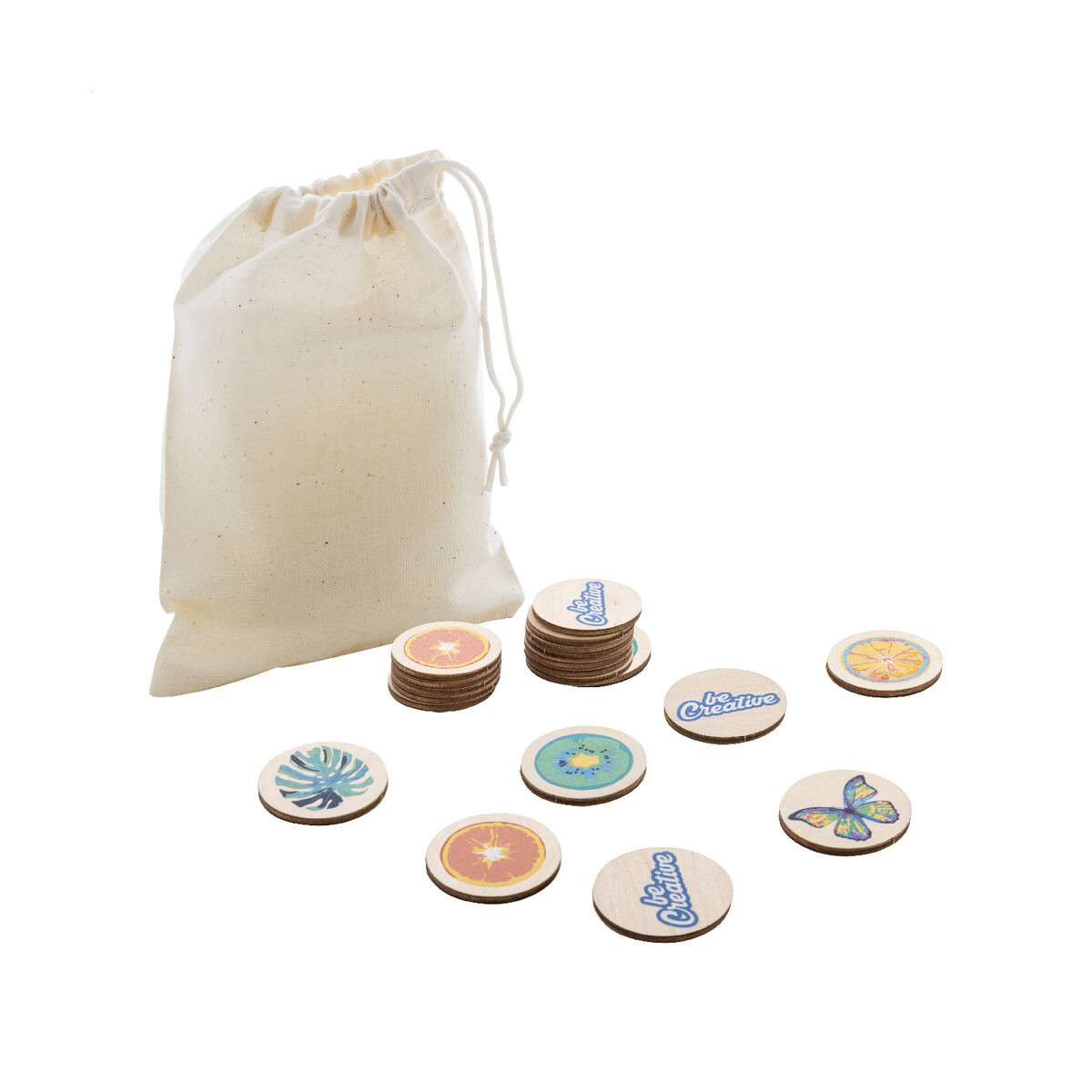 Tokemor Creative personalizowana gra memory to niezwykle oryginalny gadżet promocyjny, który wprowadzi świeży powiew kreatywności do kampanii dla Twojej firmy. Wykonana z naturalnego drewna brzozowego, poddana procesowi laminowania, zachwyca wytrzymałością oraz eleganckim wykończeniem. Zestaw składa się z 24 płytek o średnicy 35 mm, zamkniętych w praktycznym, bawełnianym etui. Dzięki temu, przy wymiarach 130 × 170 mm i wadze zaledwie 25 g, gra jest lekka, poręczna i łatwa do zabrania na wydarzenia firmowe czy targi 😊.