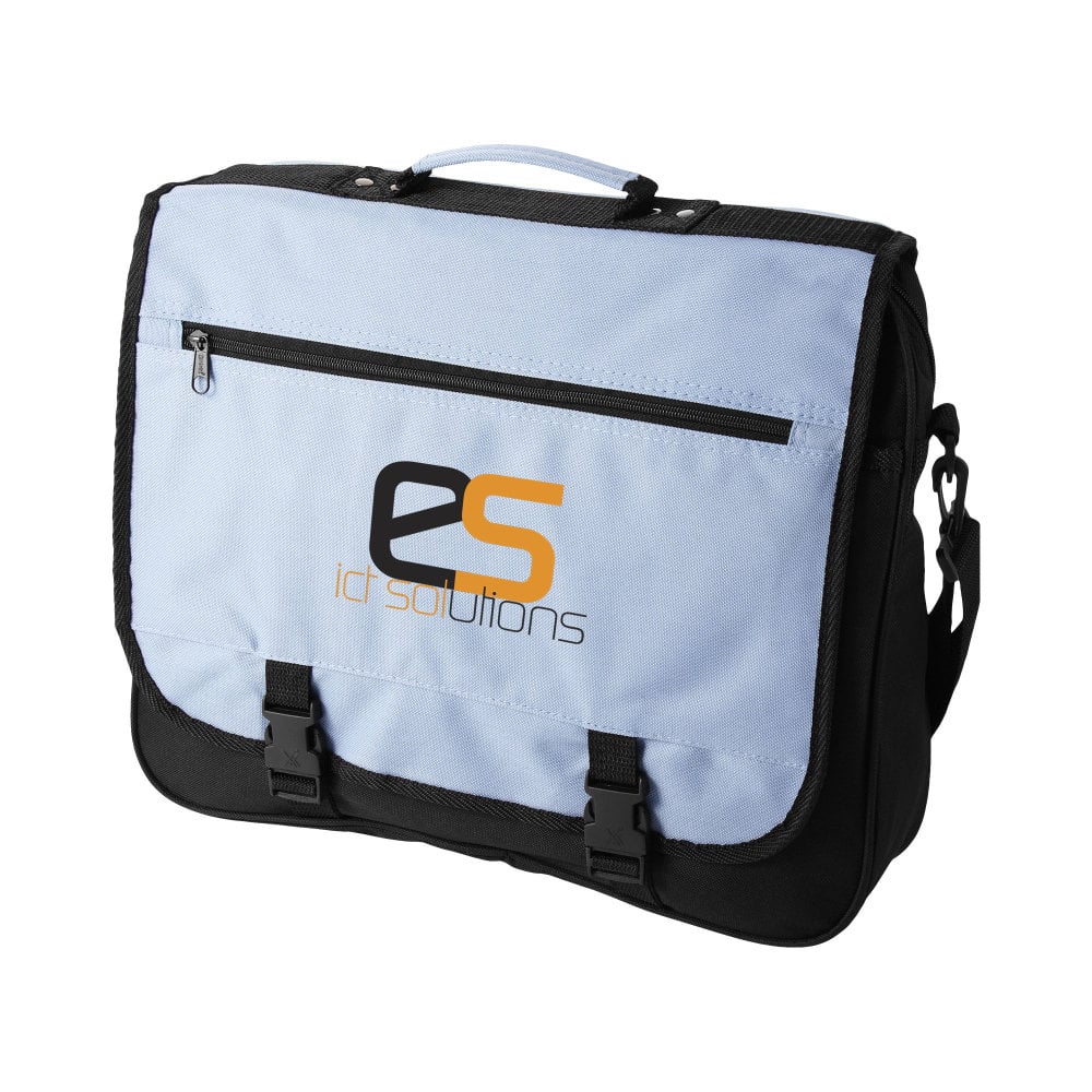 Torba wystawowa to must-have dla każdego, kto potrzebuje wygodnego i uniwersalnego rozwiązania przewożenia swoich rzeczy. Wyposażona w regulowany pas na ramię oraz klapę zapinaną na sprzączki, torba zapewnia bezpieczne przechowywanie zawartości. Główna przegroda została wyposażona w zamek błyskawiczny, a pod klapką znajdują się kilka otwartych kieszonek na drobne przedmioty. Torba świetnie sprawdzi się wszędzie tam, gdzie potrzeba wygodnego transportu.