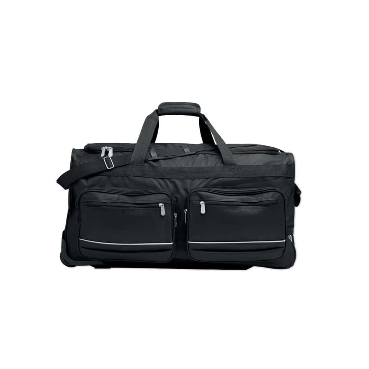 Torba na kółkach 600D RPET ITFITS to znakomity sposób, aby wyróżnić się w podróży i jednocześnie promować markę – wystarczy dodać własne logo lub efektowny nadruk, a torba natychmiast staje się mobilnym nośnikiem reklamy 😊. Ten trwały gadżet wykonany z ekologicznego materiału 600D rpet łączy nowoczesny design z funkcjonalnością: wymiary 72 × 36 × 38 cm zapewniają dużą pojemność, waga jedynie 2,75 kg gwarantuje wygodę, a dwa solidne kółka i podwójna rama pozwalają bez wysiłku prowadzić torbę po lotniskach, dworcach czy hotelowych korytarzach. Trzy kieszenie wewnętrzne, zamykana przednia kieszeń oraz dwie boczne przegrody wsuwane pomagają utrzymać porządek, a wyściełane paski na ramiona dają alternatywę noszenia w ręku lub na plecach.