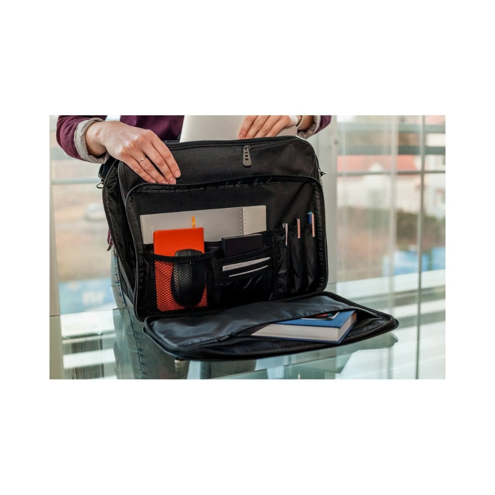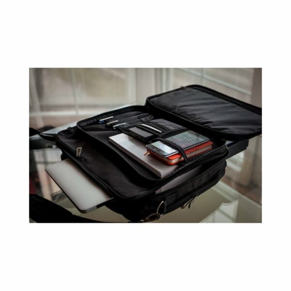 Torba na laptopa 15,6″ to kompaktowe i wytrzymałe rozwiązanie dla osób podróżujących z laptopem. Posiada dwa główne przegrody na laptopa i inne przedmioty, a także dwa przednie kieszenie zamykane na zamek błyskawiczny. Przednia kieszeń posiada wiele przegródek, dzięki czemu można w niej zorganizować wszystkie drobiazgi. Dodatkowo torba wyposażona jest w regulowany pasek na ramię, ułatwiający wygodny transport. Ten model torby jest idealnym rozwiązaniem do przenoszenia i przechowywania laptopa.