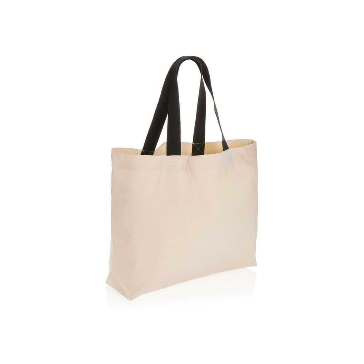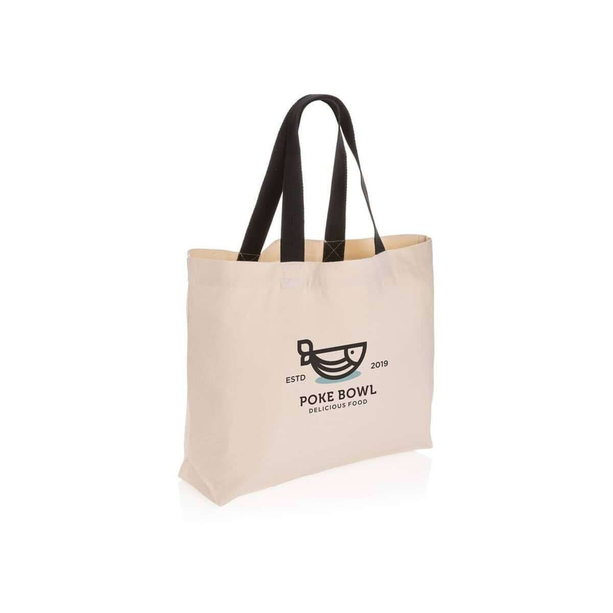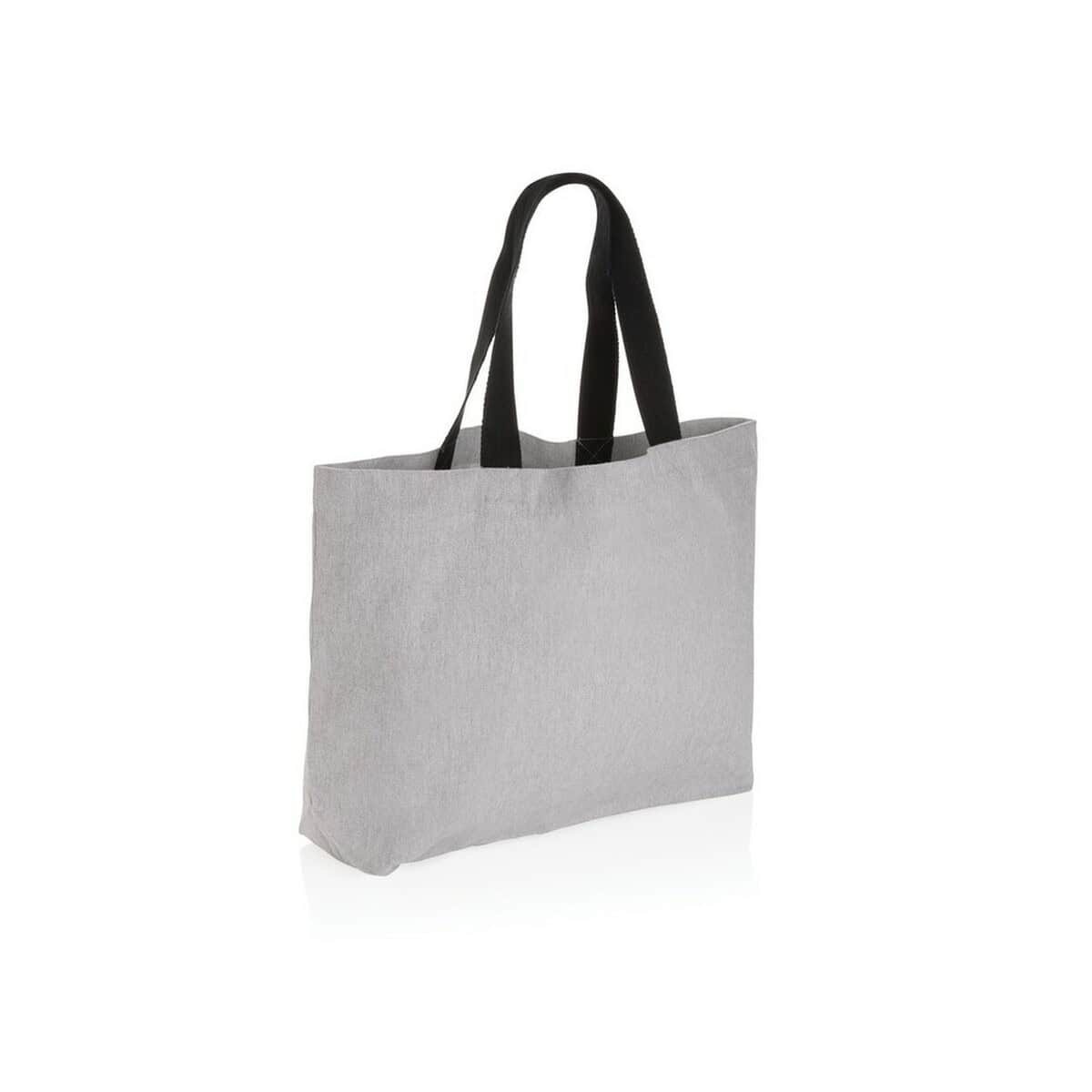 Dzięki obszernym wymiarom 57 × 4 × 41 cm torba pomieści zarówno codzienne zakupy, jak i materiały konferencyjne czy prezenty firmowe. Dostępna w szerokiej palecie kolorystycznej – szarym, zielonym, brązowym, białym, niebieskim oraz czarnym – pozwala łatwo dopasować barwę do identyfikacji wizualnej marki. Matowe płótno z recyklingu tworzy idealną powierzchnię pod wyraziste logo lub precyzyjny nadruk.
