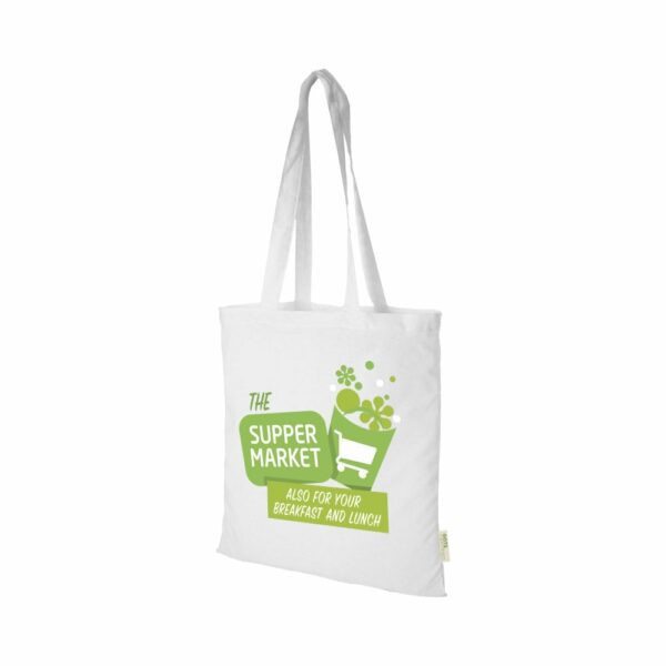 Ta wytrzymała torba to idealny prezent na imprezę, konferencję lub po prostu na codzienne zakupy. Wykonana z gęstej bawełny o gęstości 140 g/m², zapewnia bezpieczne i komfortowe noszenie ciężkich przedmiotów. Dodatkowo, 32-centymetrowe uchwyty ułatwiają noszenie torby na ramieniu. Świetnym atutem jest certyfikat GOTS, który gwarantuje, że torba jest wykonana zgodnie z najwyższymi standardami ekologicznymi.