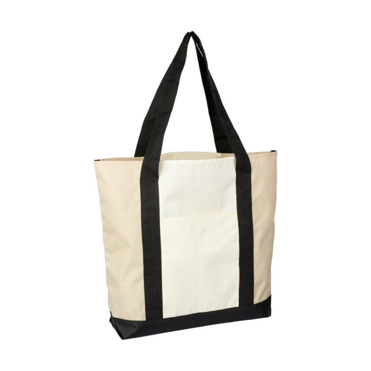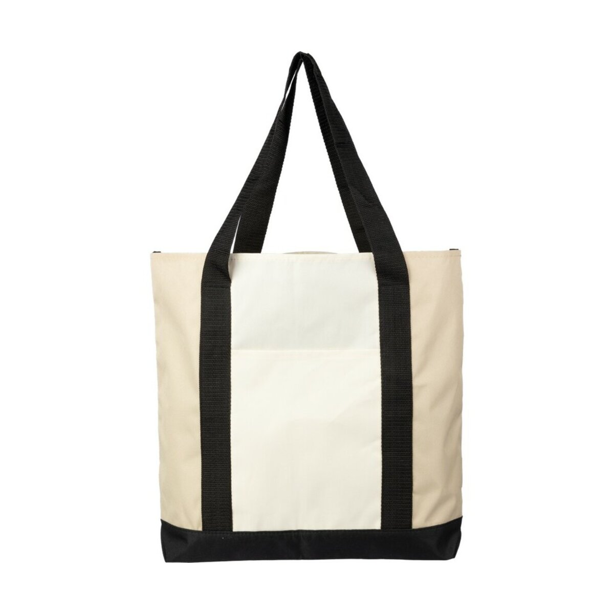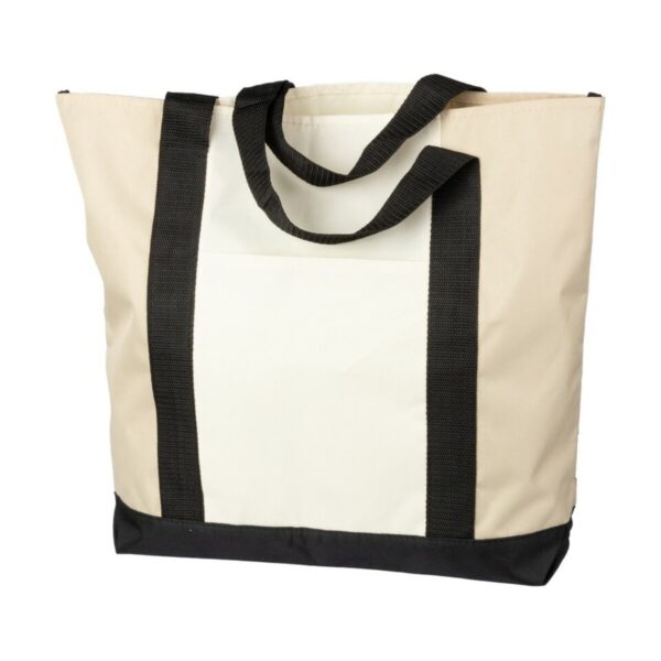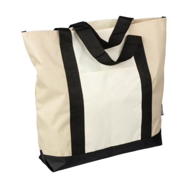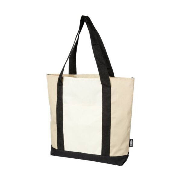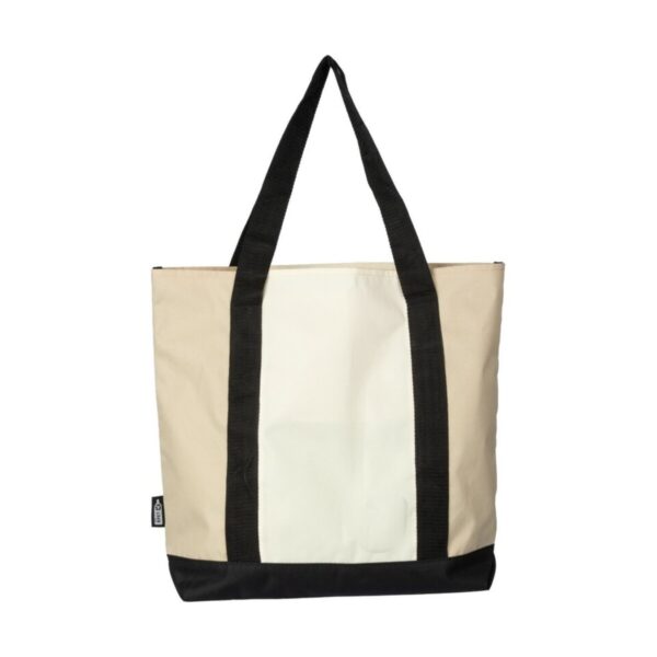 Z funkcjonalnego punktu widzenia, Torba na zakupy RPET zawiera dużą przegrodę zapinaną na zamek, co zapewnia bezpieczeństwo przechowywanych przedmiotów. Dodatkowo, przód torby wyposażono w otwartą kieszeń, idealną na drobne przedmioty, które chcesz mieć pod ręką. Uchwyty torby są na tyle długie, że można ją wygodnie nosić na ramieniu, co jest ogromną zaletą przy większych zakupach.