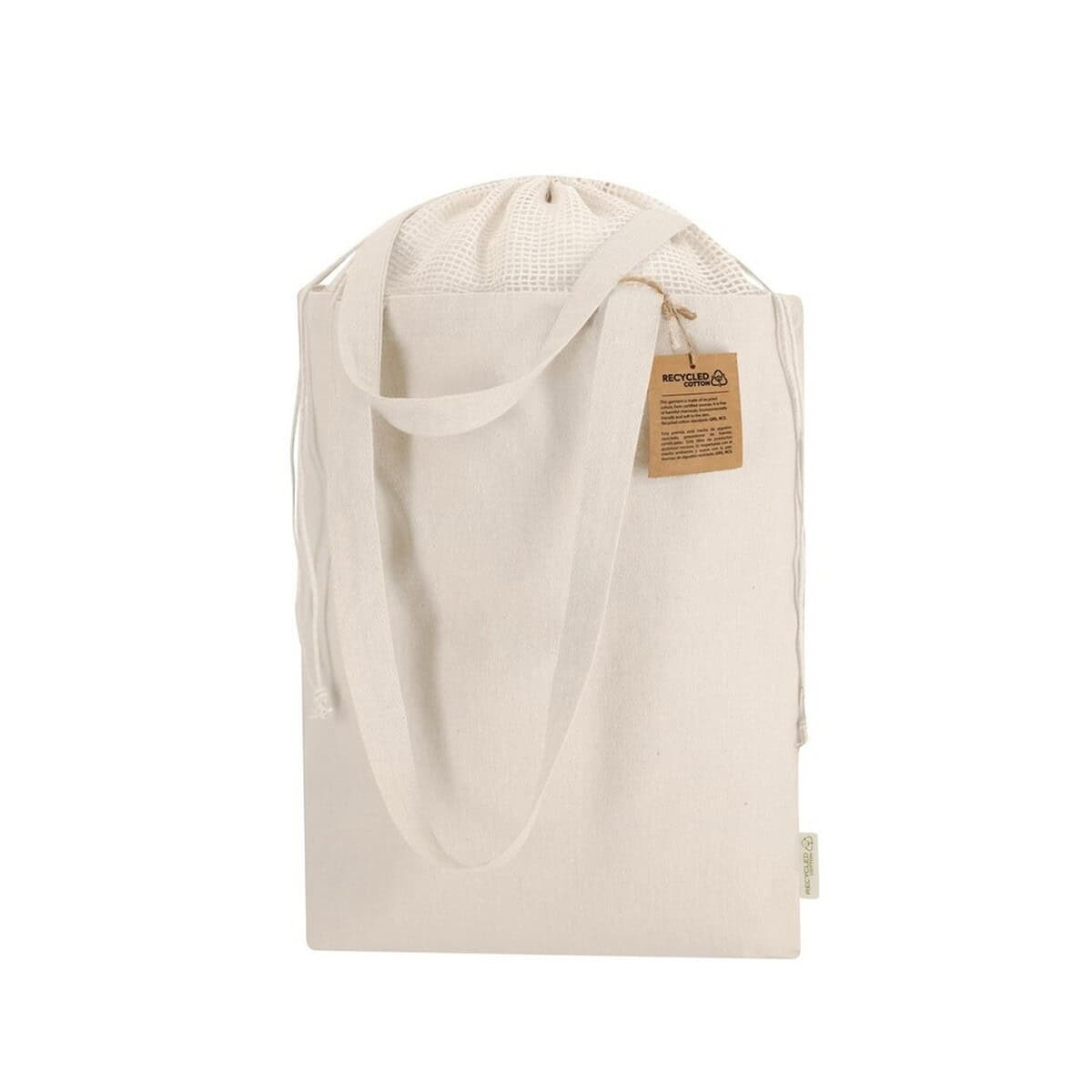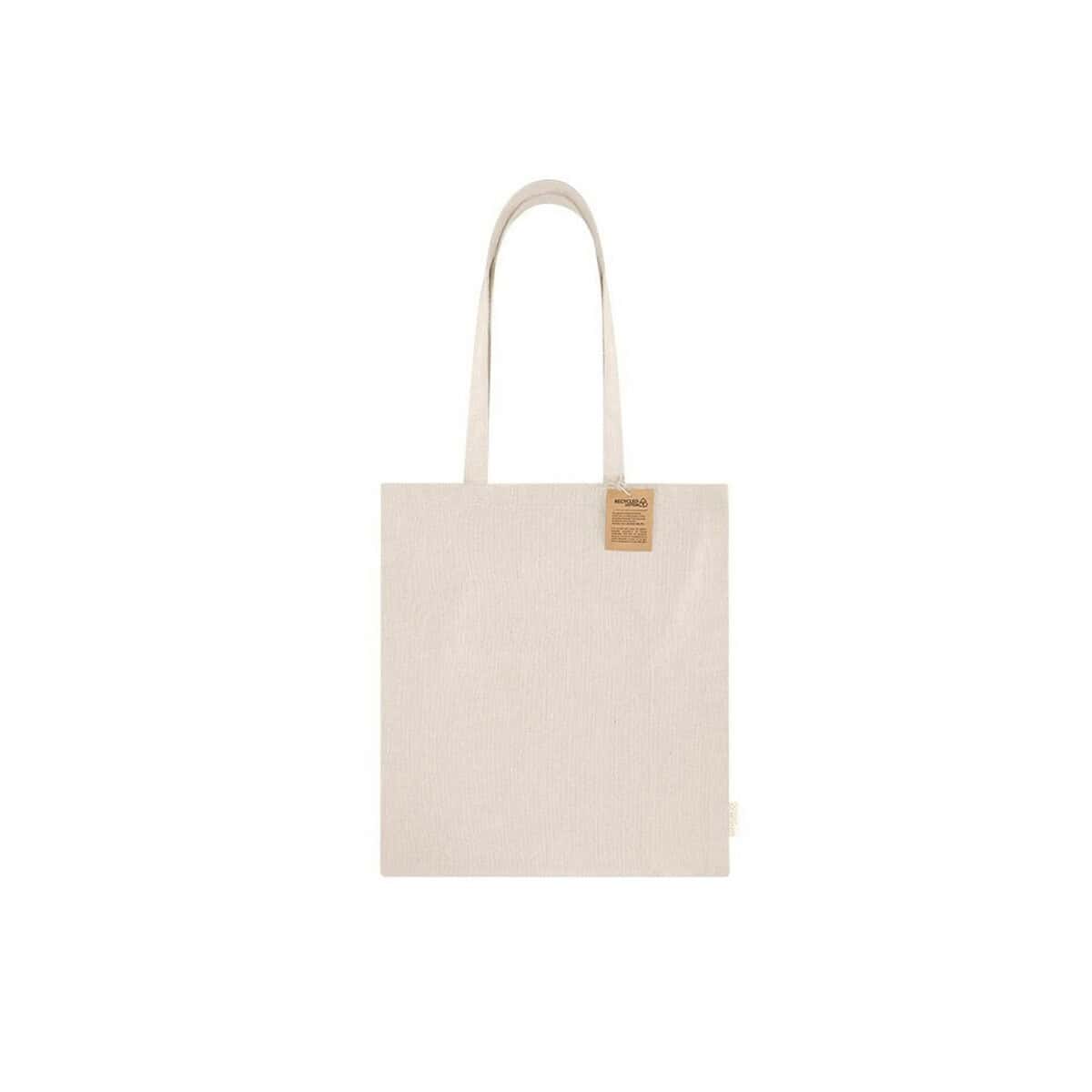 Torba na zakupy z bawełny z recyklingu to wyśmienity sposób, aby połączyć ekologiczne wartości z funkcjonalnością i wyjątkową promocją marki. Uszyta z solidnej bawełny pochodzącej z recyklingu 260 g/m2, zachwyca naturalnym, beżowym odcieniem i długimi uchwytami, które pozwalają wygodnie nosić ją na ramieniu. Już na pierwszy rzut oka widać, że ten gadżet został stworzony dla Twojej firmy – szeroka, gładka powierzchnia z łatwością pomieści wyraziste logo lub inspirujący nadruk, dzięki czemu torba zamienia się w mobilny nośnik reklamy 😊.