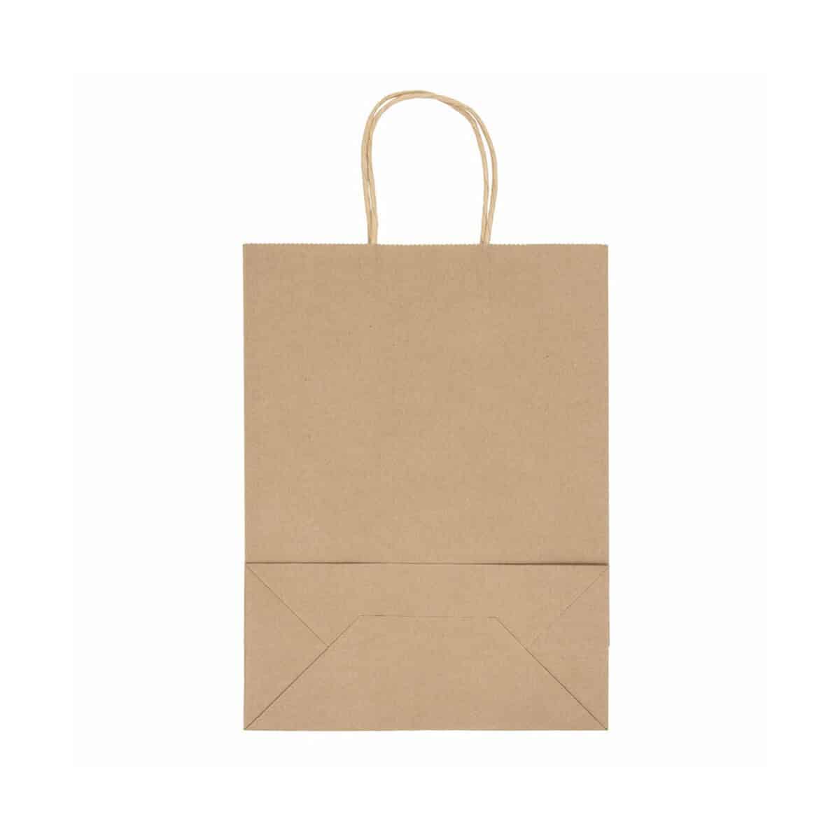 Torba papierowa A5 | Wanda S to znakomity sposób, by podkreślić ekologiczny charakter marki i jednocześnie wyeksponować firmowe logo. Wykonana w całości z papieru kraft z recyklingu 100 g/m² w naturalnym kolorze przyciąga klientów świadomych środowiskowo. Dzięki kompaktowym wymiarom 18 × 8 × 22,5 cm oraz wzmocnionym uchwytom (Ø 0,4 × 25 cm) torba wytrzymuje obciążenie do 4 kg, co czyni ją doskonałym opakowaniem na lekkie upominki, katalogi czy kosmetyki 🙂.