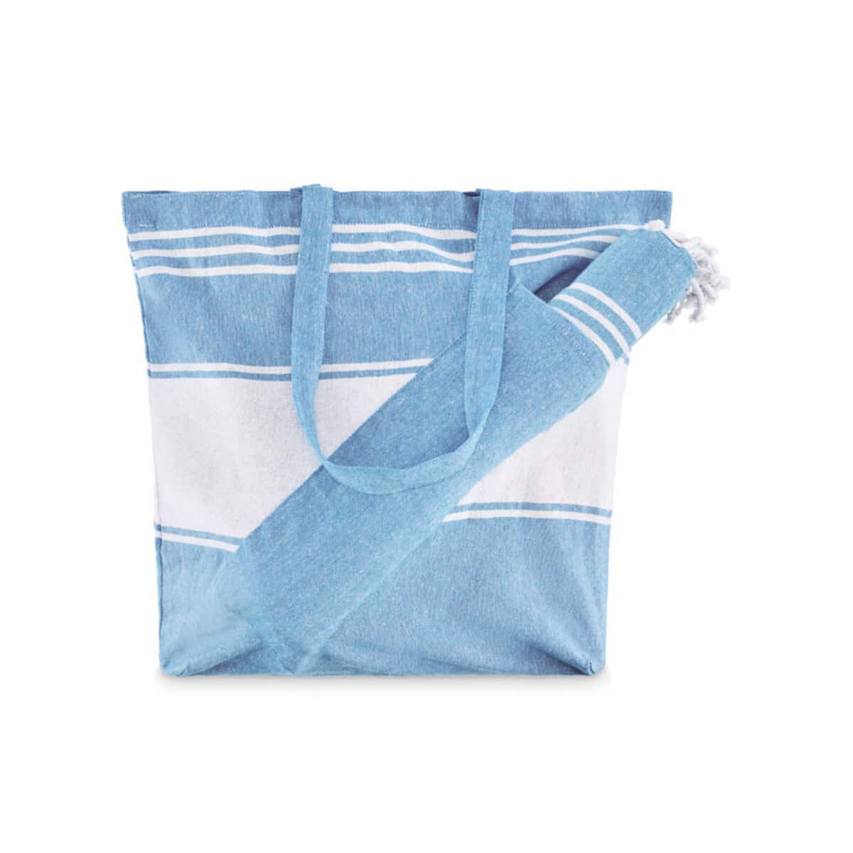Zestaw jest znakomity dla odbiorcy biznesowego i indywidualnego. Klienci korporacyjni mogą wykorzystać go jako prezent powitalny dla gości konferencji nad morzem, nagrodę w programach lojalnościowych czy upominek dla pracowników podczas firmowego pikniku. Uczestnikom wydarzeń sportowych posłuży jako praktyczny ręcznik na mecie, a turystom – jako poręczna torba na zakupy z lokalnego bazaru. Dla rodzin z dziećmi torba pomieści zabawki plażowe, a modnym plażowiczom – wszystkie letnie akcesoria.