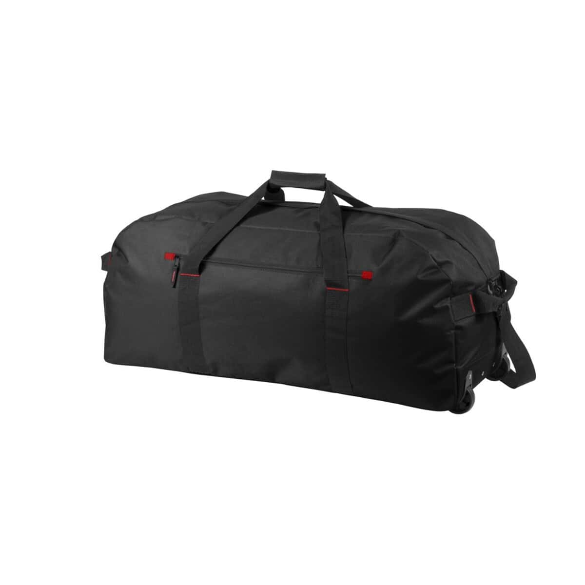 Torba podróżna na kółkach Vancouver to znakomite połączenie funkcjonalności i elegancji, które sprawdzi się zarówno podczas weekendowego wypadu, jak i dłuższych podróży służbowych. Jej rozbudowana komora główna zamykana na zamek pomieści garderobę, akcesoria sportowe czy materiały targowe, a przednia kieszeń na zamek pozwoli wygodnie oddzielić dokumenty lub bilet lotniczy. Solidne kółka i stabilny uchwyt gwarantują płynne prowadzenie nawet w zatłoczonym terminalu lotniska. Wymiary: 85 x 34 x 35 cm dają aż 100 litrów przestrzeni, a przy tym całość waży jedynie Waga: 2150 g. Wytrzymały Materiał: 600D Poliester w ponadczasowym Kolor: czarny zapewnia odporność na przetarcia i łatwość czyszczenia 🙂.