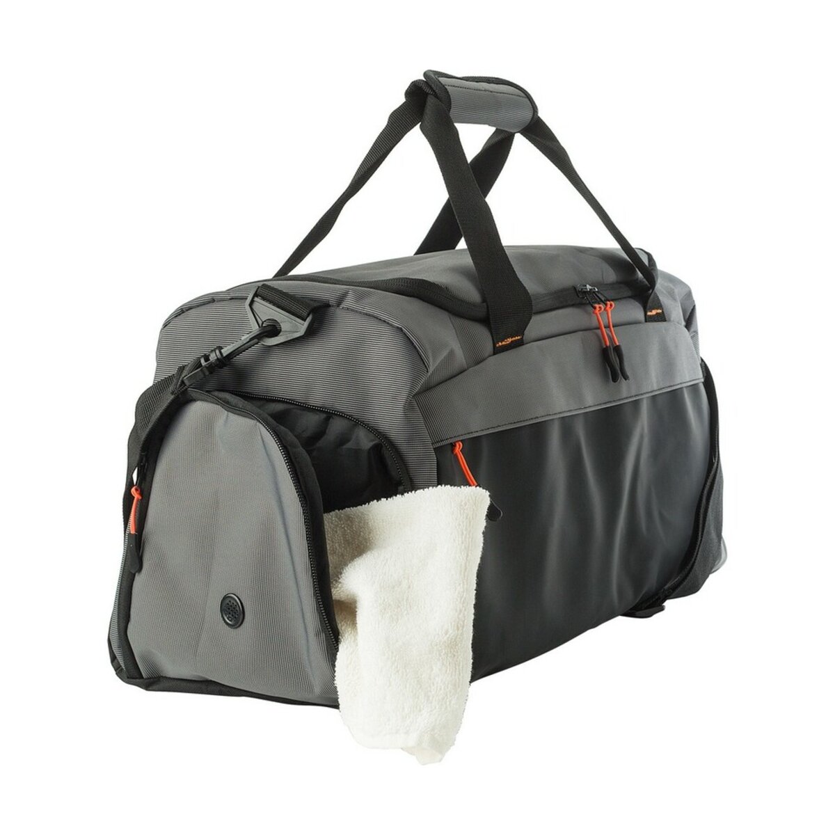 Praktycznie zaprojektowana Torba sportowa, podróżna ma wymiary 50 x 24 x 26 cm, co zapewnia wystarczająco dużo miejsca na twoje rzeczy. Przestronna główna komora wzmocniona na dole chroni zawartość przed uszkodzeniami, a dodatkowe boczne kieszenie zwiększają funkcjonalność torby. Jedna z nich, wykonana z siatki, pozwala na przechowywanie przedmiotów, które wymagają wentylacji – idealna na mokre ubrania czy buty sportowe. Z kolei przednia kieszeń na zamek to doskonałe miejsce na drobne akcesoria, które chcesz mieć pod ręką.