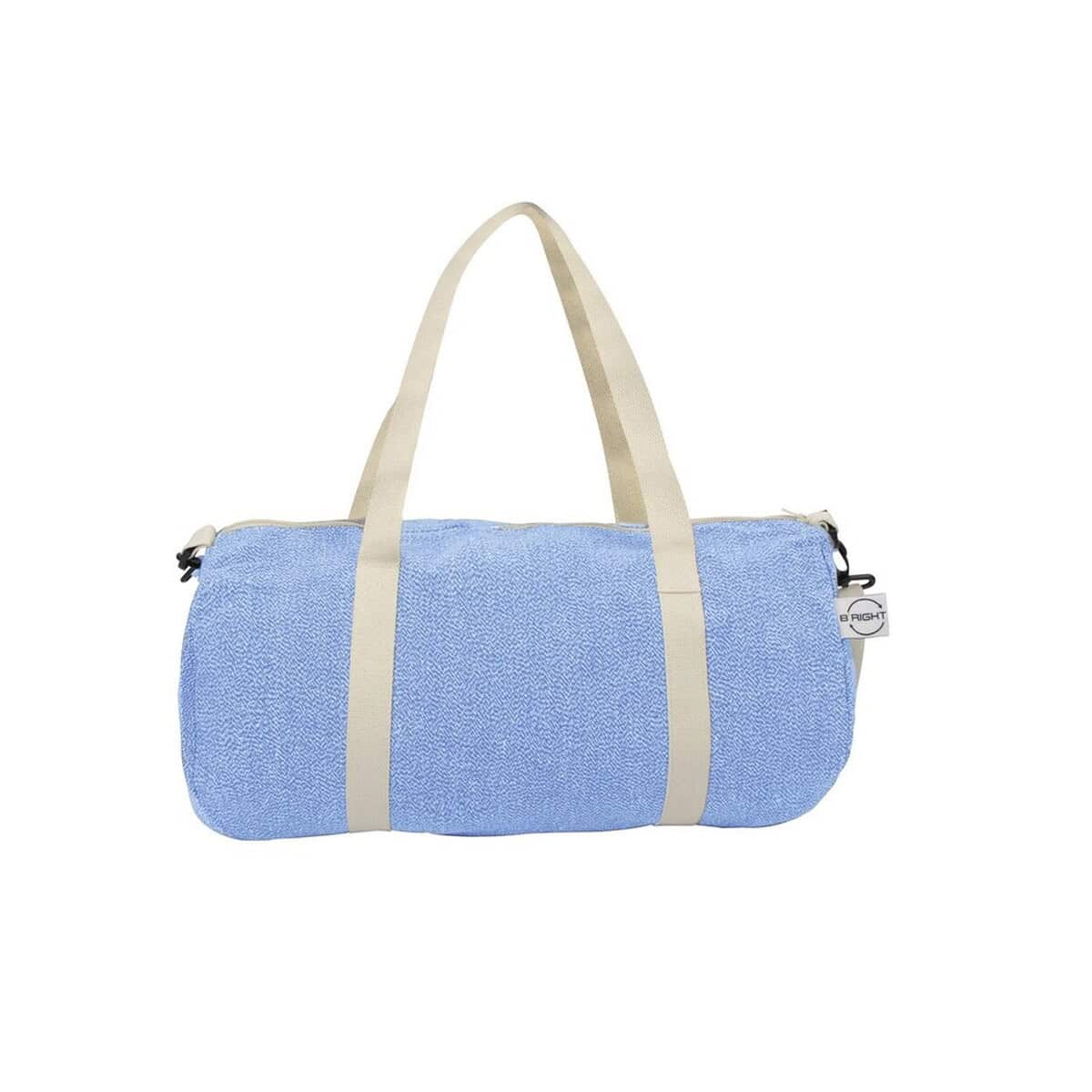 Torba sportowa, podróżna B’RIGHT z bawełny z recyklingu i poliestru z recyklingu | Asha mierzy 49 × 24 × 26 cm, waży zaledwie 370 g, a mimo to jest wyjątkowo pakowna. Dostępna w stonowanych odcieniach szarości lub niebieskiego, doskonale eksponuje firmowe logo na szerokich bocznych panelach, które zapewniają dużą powierzchnię na nadruk. Dzięki temu produkt staje się nie tylko praktycznym dodatkiem, lecz także mobilnym nośnikiem reklamy.
