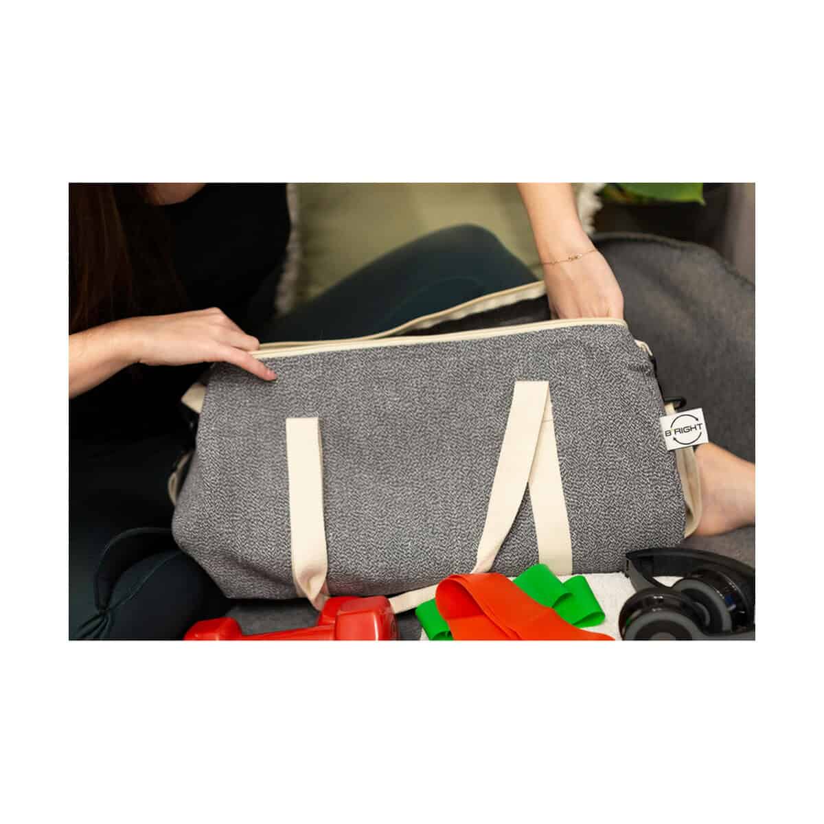 Torba sportowa, podróżna B’RIGHT z bawełny z recyklingu i poliestru z recyklingu | Asha to znakomite rozwiązanie dla firm, które chcą połączyć troskę o środowisko z praktycznym prezentem 😊. Wykonana z materiałów z odzysku i zgodna z prestiżowym certyfikatem GRS, udowadnia, że odpowiedzialność może iść w parze z funkcjonalnością. Jej duża komora główna zamykana na zamek pomieści sportowe buty, ręcznik i cały zestaw treningowy, a także ubrania na weekendowy wypad. Solidne, wytrzymałe uchwyty oraz regulowany pasek na ramię gwarantują komfort noszenia zarówno w drodze na siłownię, jak i podczas służbowych podróży.