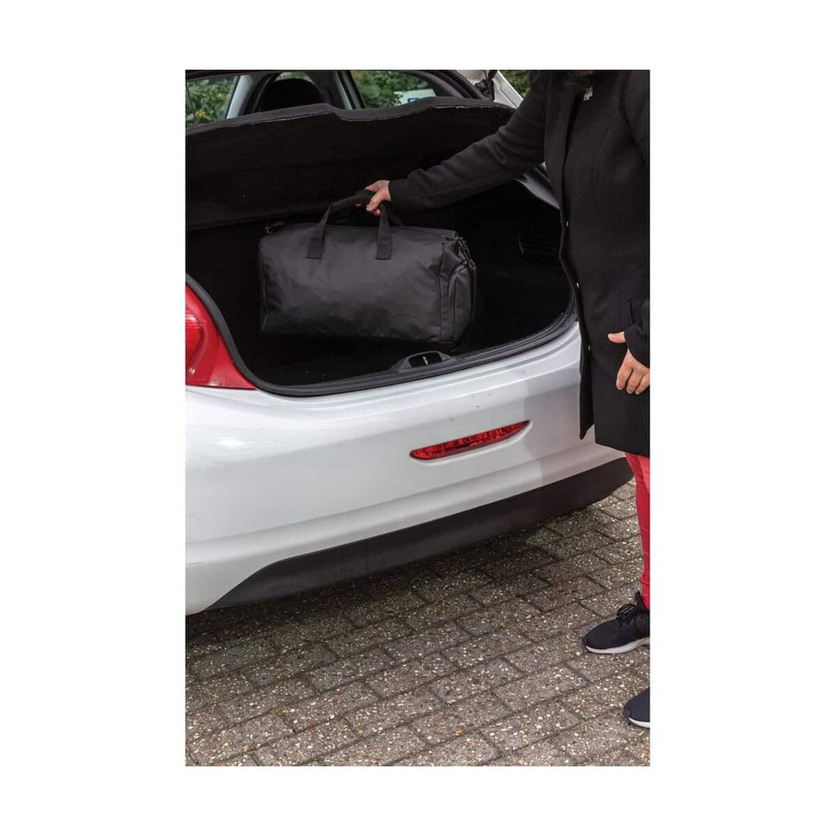 Wnętrze skrywa dużą komorę główną, w której zmieszczą się buty, odzież, akcesoria treningowe czy dokumenty służbowe. Brak PVC oraz ślad węglowy 3,59 kg CO₂ podkreślają jej odpowiedzialny charakter, a mocne zamki zabezpieczają zawartość w każdych warunkach. Wymiary: 48 × 24,5 × 24,5 cm, materiał: poliester/PU, kolor: czarny – te cechy czynią ją wyjątkowo trwałą i odporną na wilgoć.