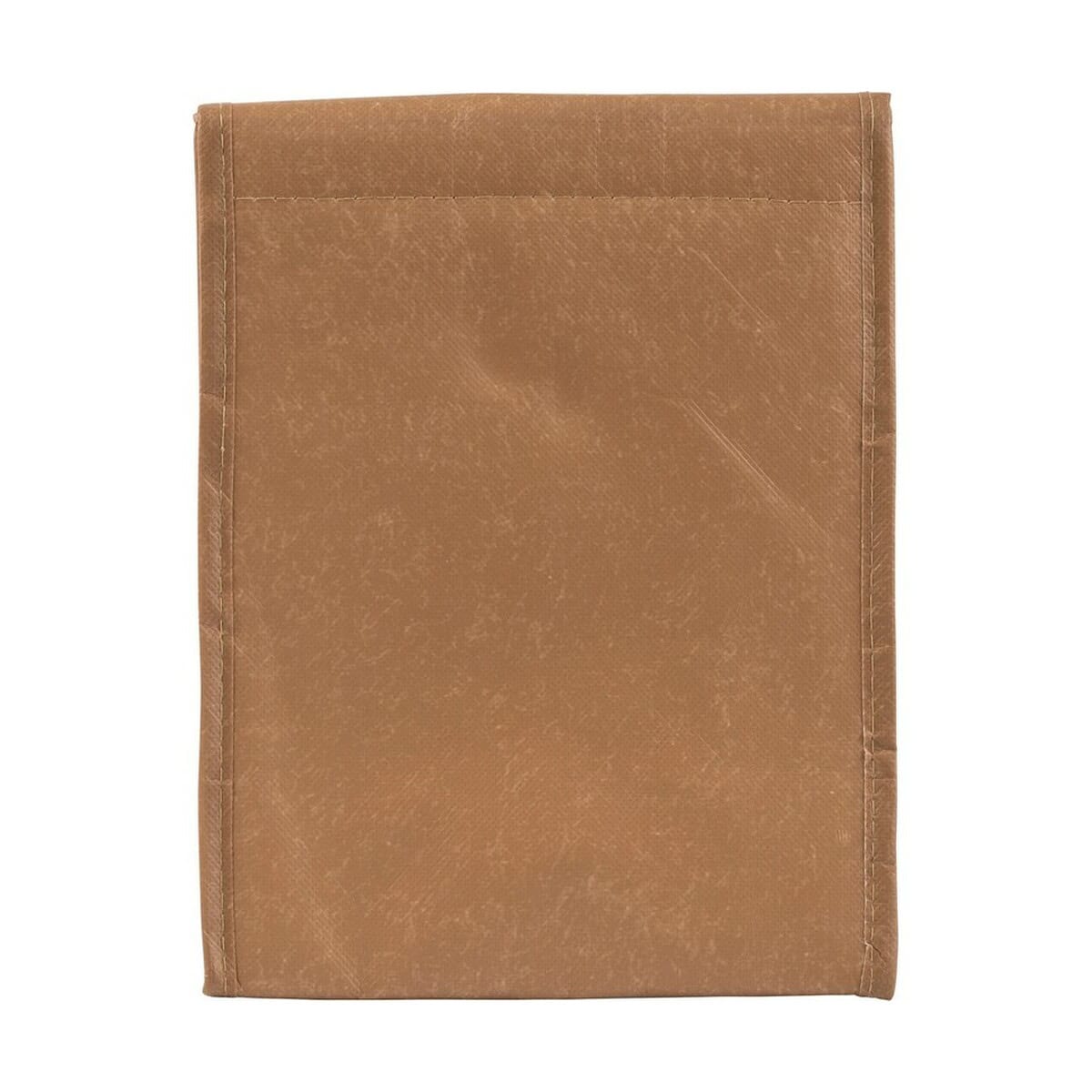 Wymiary: 19,1 x 10,9 x 26,3 cm zapewniają odpowiednią pojemność na lunch box, butelkę wody czy owocową przekąskę, a jednocześnie ułatwiają codzienne przenoszenie w plecaku, torbie na laptopa czy w dłoni. Materiał: laminowany non-woven gwarantuje trwałość i odporność na uszkodzenia, a jednocześnie stanowi solidną barierę cieplną, która utrzymuje temperaturę posiłków przez długi czas. Całość dopełnia Kolor: brązowy, podkreślający ekocharakter produktu i doskonale eksponujący firmowe logo.