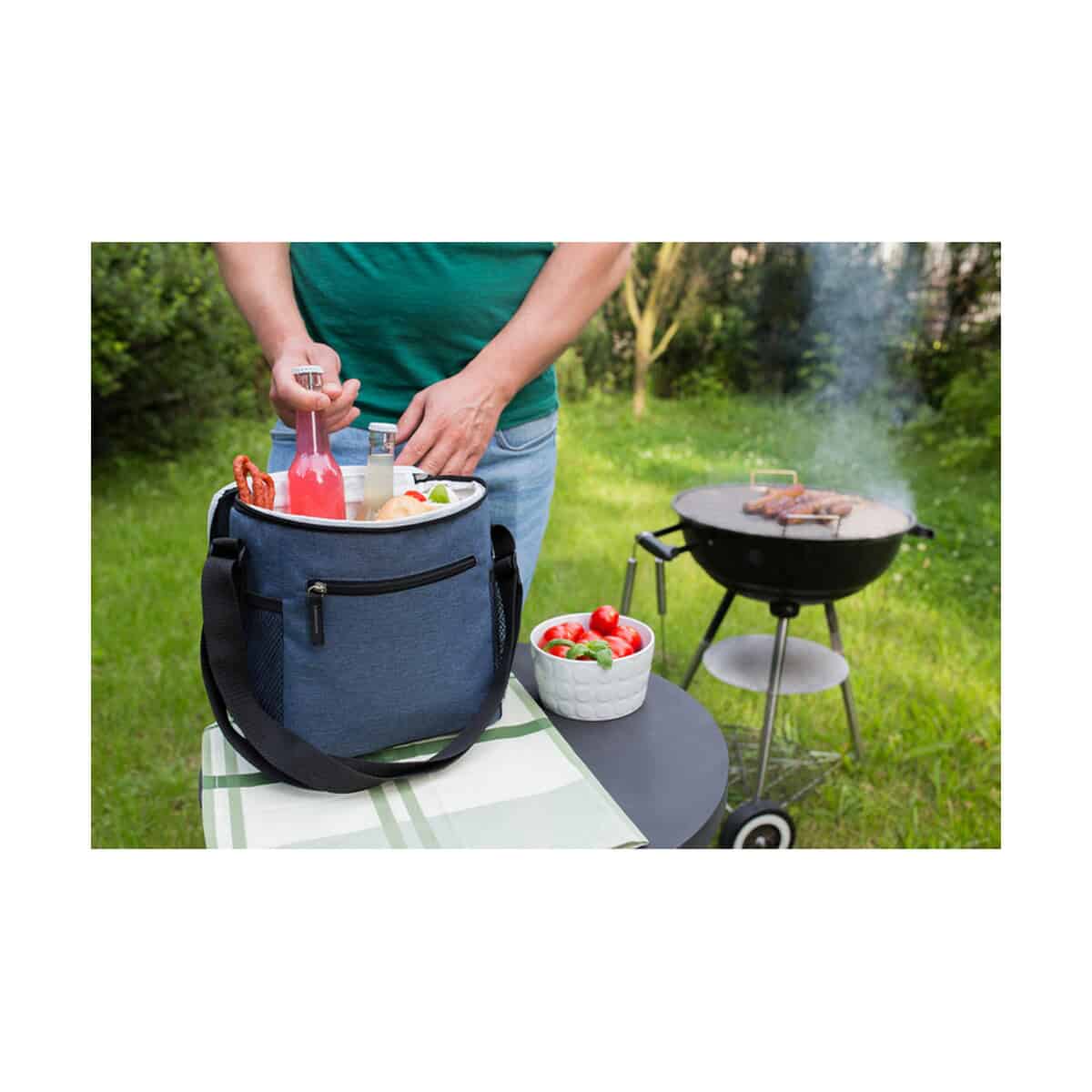 Torba termoizolacyjna | Christopher okaże się doskonała dla sportowców, pracowników terenowych, studentów oraz rodzin z dziećmi, które planują całodniowe spacery. Wymiary 25 x 15 x 24 cm zapewniają wystarczającą pojemność na kilka pojemników z jedzeniem lub sześciopak napojów, a kompaktowy kształt ułatwia transport w samochodzie czy na rowerze. Poliester 300D i 600D gwarantuje wytrzymałość oraz łatwość w czyszczeniu, co czyni ją reklamowe rozwiązanie na lata.