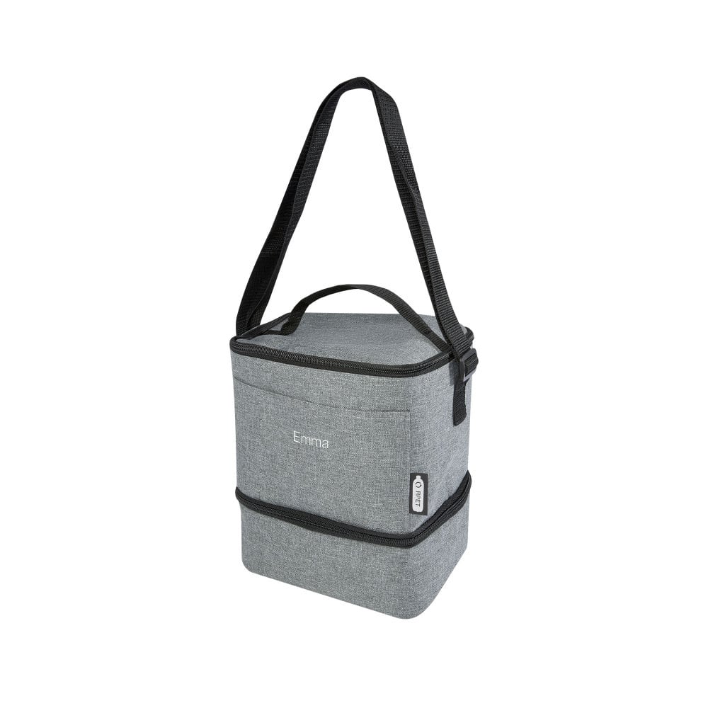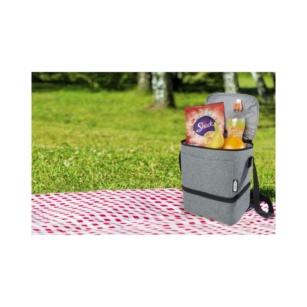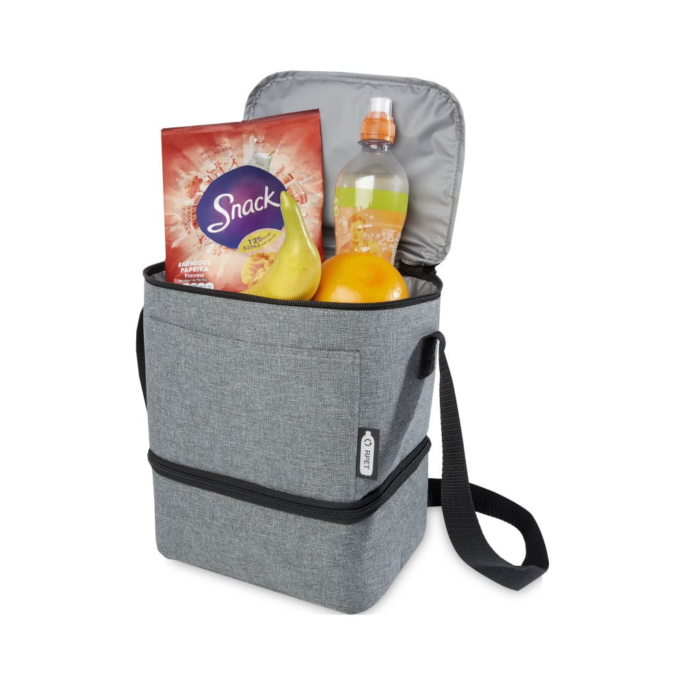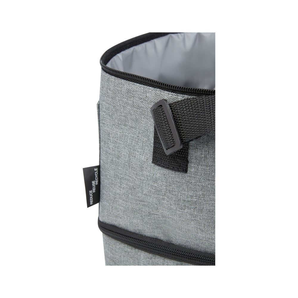 Torba termoizolacyjna na lunch Tundra zapewnia wygodę i praktyczność. Wykonana z materiałów z recyklingu, posiada dolną i górną izolowaną komorę zapinaną na zamek błyskawiczny, zapewniając wystarczającą ilość miejsca na Twoje przysmaki w porze lunchu. Uzupełnieniem jest przednia ukośna kieszeń, idealna do przechowywania maseczki lub innych drobnych przedmiotów. Podszewka PEVA komory termoizolacyjnej i zewnętrzna strona wykonane są z plastiku PET z recyklingu, zapewniając wygodę i trwałość. Torba na lunch Tundra to idealna opcja dla tych, którzy szukają wygody i praktyczności.