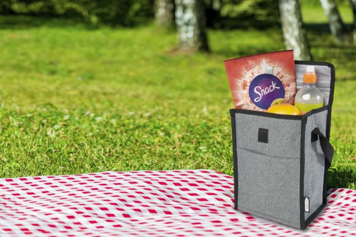 Torba termoizolacyjna Reclaim mieszcząca 4 puszki, wykonana z plastiku PET z recyklingu to pomysłowy, ekologiczny gadżet, który przyciąga uwagę od pierwszego spojrzenia 😊. Zewnętrzna warstwa w 100% z przetworzonych butelek PET oraz wytrzymały materiał 600D Recycled Polyester tworzą duet, który nie tylko dba o świeżość napojów, ale i o środowisko. Kompaktowe wymiary 18,5 × 27 × 14 cm przy wadze zaledwie 150 g sprawiają, że torba znakomicie sprawdza się w każdej sytuacji – od firmowych pikników po codzienne lunche w biurze. Szary, uniwersalny kolor podkreśla nowoczesny charakter, natomiast składane zamknięcie i wygodny uchwyt ułatwiają transport.