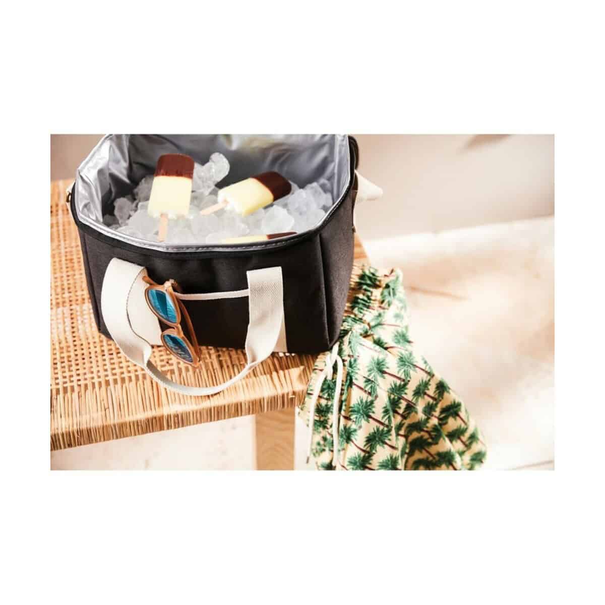Torba termoizolacyjna VINGA RPET Sortino to nowoczesny, a zarazem wyjątkowo praktyczny gadżet, który doda prestiżu każdej firmowej akcji promocyjnej. Jej elegancki design w kolorach czarnym, szarym lub niebieskim sprawia, że przyciąga wzrok zarówno w biurze, jak i podczas aktywnego wypoczynku 😊. Solidna konstrukcja z 50 % RPET oraz podszewką PEVA gwarantuje długotrwałe utrzymywanie temperatury posiłków i napojów, co czyni ją doskonałym wsparciem w podróży, w pracy czy na pikniku.