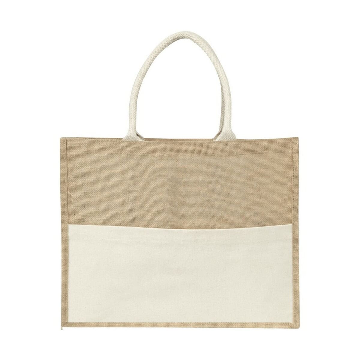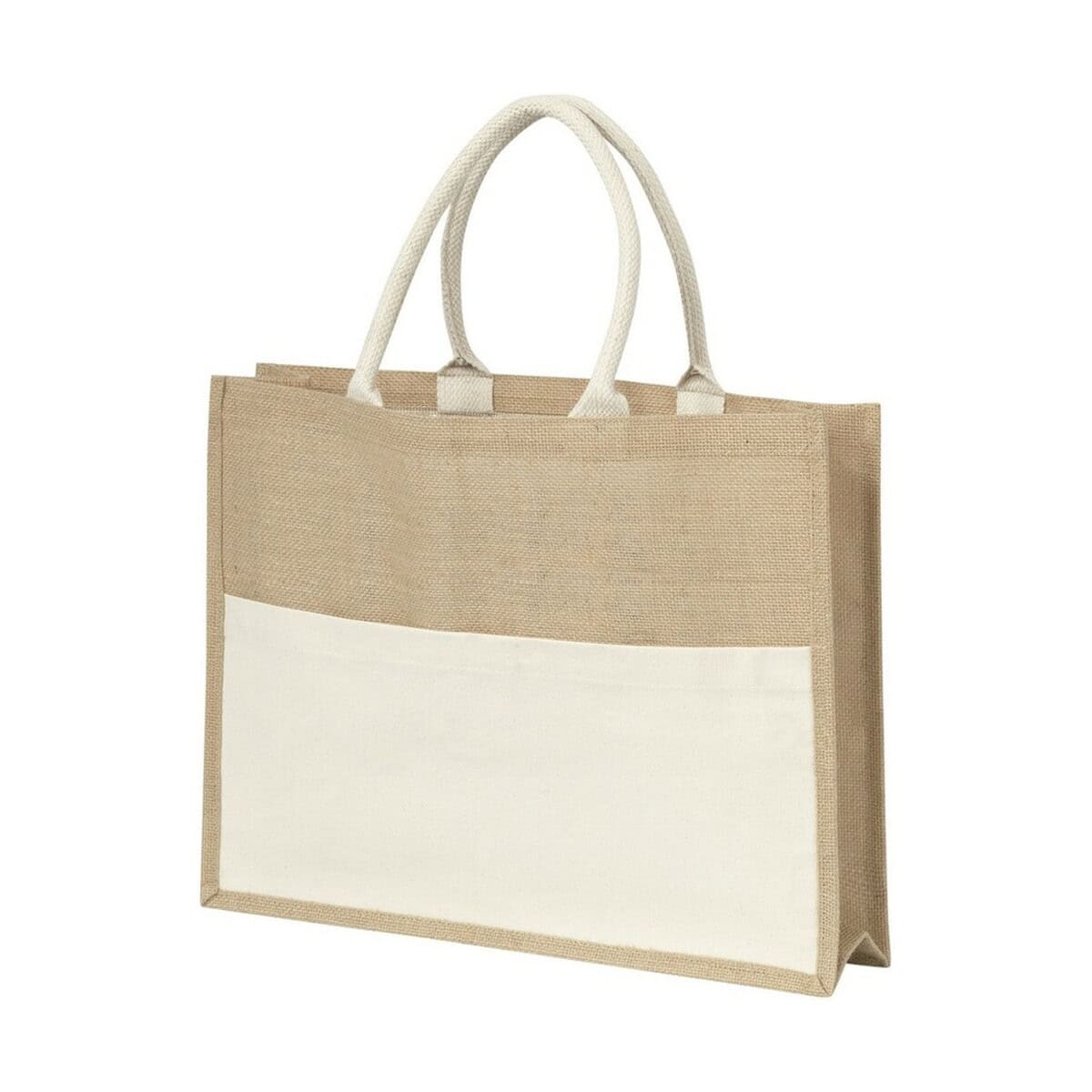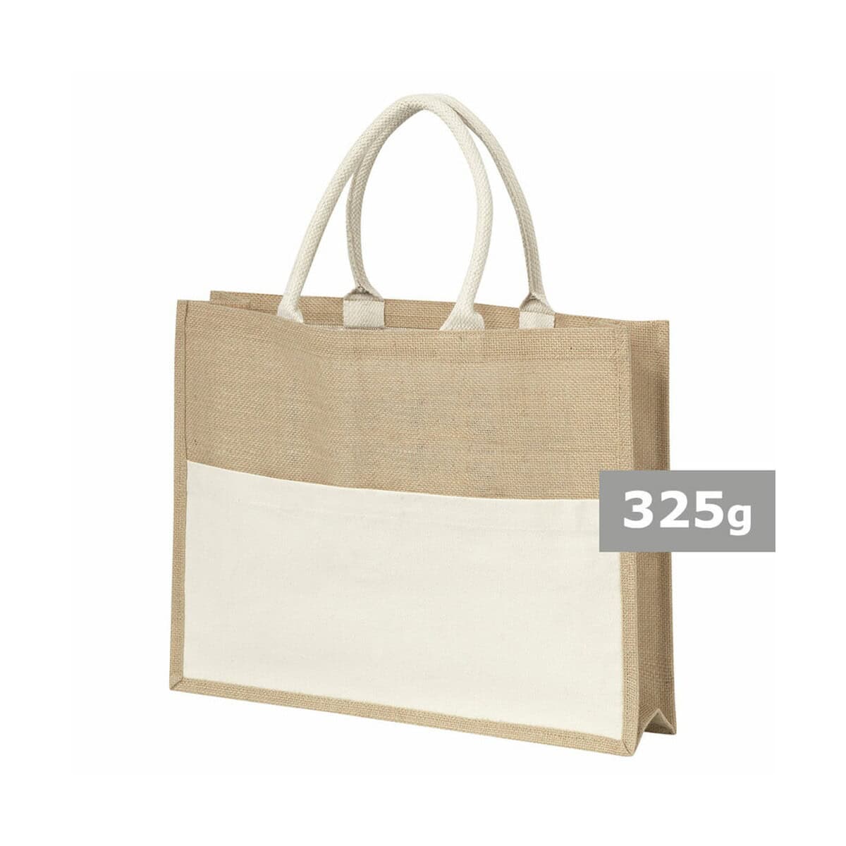 Zewnętrzna przednia kieszeń ułatwia szybki dostęp do telefonu, portfela czy kluczy, a naturalny kolor juty staje się neutralnym tłem dla każdego projektu graficznego. Wymiary 40 × 16 × 35 cm oraz niewielka waga 284 g czynią z niej dynamiczny gadżet promocyjny, który można z łatwością zabrać na plażę, targ lub codzienne zakupy. Torba z juty doskonale sprawdzi się jako prezent reklamowy w branży turystycznej, eko-spożywczej, wellness, modowej czy nawet w segmencie konferencyjnym – wszędzie tam, gdzie liczy się świadomy wybór przyjazny środowisku.