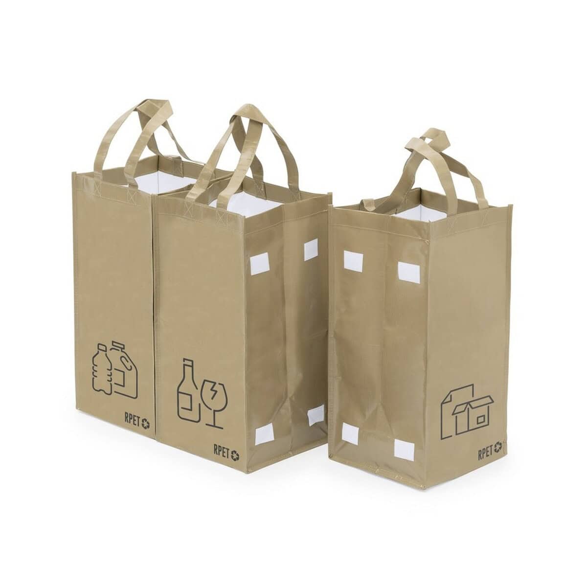 Zestaw Torby do segregacji RPET, 3 szt. to perfekcyjny gadżet reklamowy zarówno dla branży ekologicznej, recyklingowej czy komunalnej, jak i dla firm spożywczych, logistycznych oraz deweloperskich oddających nowe osiedla klientom. Umieszczone na froncie duże miejsce pod logo umożliwia wyeksponowanie identyfikacji wizualnej, dzięki czemu torby zamieniają się w mobilne nośniki informacji, pracujące każdego dnia w domach i biurach.