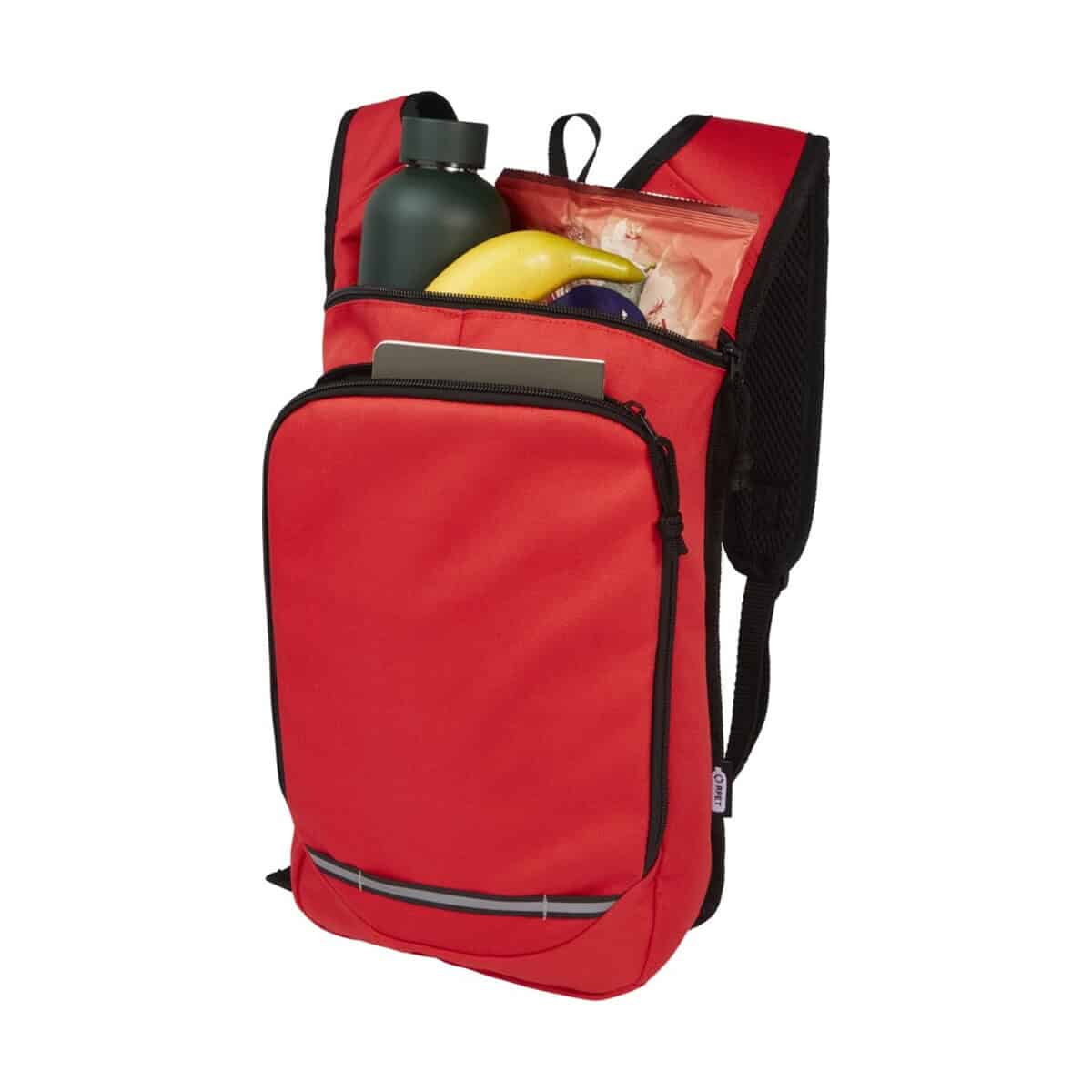 Trails plecak outdorowy, certyfikat GRS, tworzywo RPET, 6,5 l to znakomity kompan każdej akcji promocyjnej, w której liczy się troska o środowisko i nowoczesny design. Wykonany w 100% z poliestru pochodzącego z recyklingu i opatrzony globalnym certyfikatem GRS, waży zaledwie 150 g, a zarazem oferuje praktyczną pojemność 6,5 l. Dzięki kompaktowym wymiarom 22 × 36 × 8,5 cm zmieści wszystko, czego potrzeba podczas miejskiej wycieczki lub górskiego spaceru, pozostając wygodnym nawet przy dłuższym noszeniu dzięki siatkowym plecom oraz regulowanym szelkom. 🙂