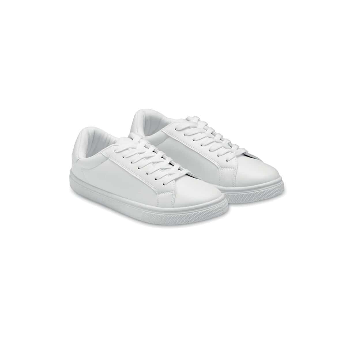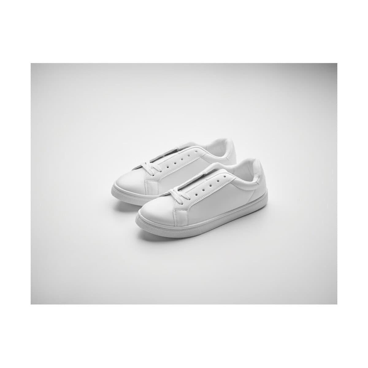 Na szczególną uwagę zasługują jego kluczowe cechy: lekkość, materiał PU, gumowa podeszwa, poliestrowe sznurówki, rozmiar 39, wymiary 27.1 x 9.3 x 8.5 cm, waga 0,800 kg, kolor biały oraz eleganckie białe pudełko. Połączenie syntetycznego poliuretanu z elastyczną gumą gwarantuje komfort i trwałość, a neutralna biel stanowi świetne tło pod personalizację. To reklamowe obuwie sprawdzi się zarówno podczas eventów outdoorowych, jak i w codziennym użytkowaniu, dbając o widoczność marki przez cały dzień.