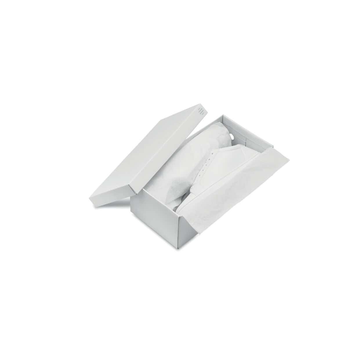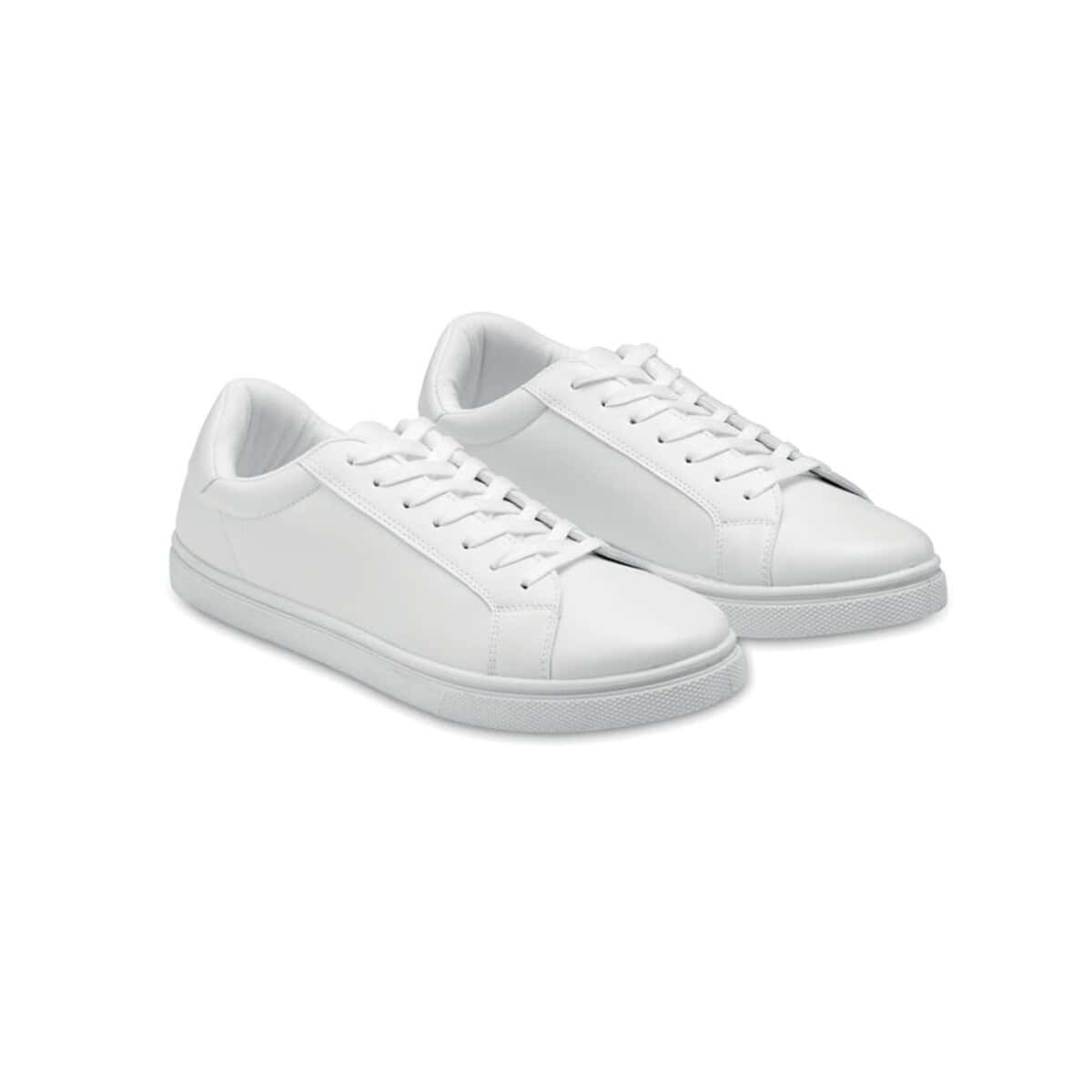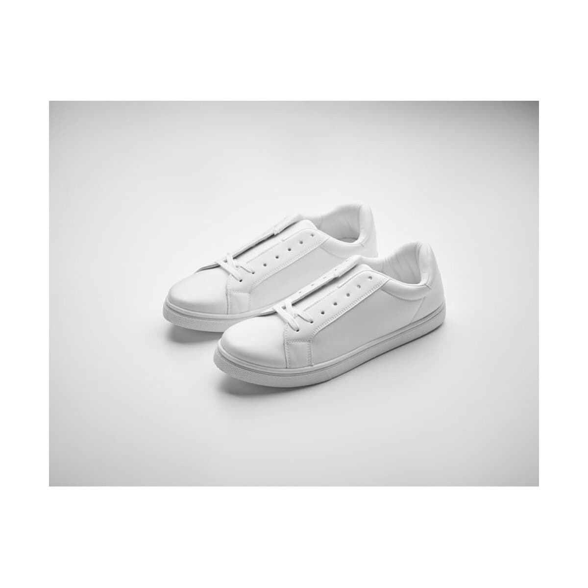 Trampki z PU 44 BLANCOS to nowoczesny, a zarazem ponadczasowy gadżet, który wyróżni każdą kampanię promocyjną. Wykonane z wytrzymałego materiału PU, o wymiarach 30,4 × 10,4 × 9,5 cm i wadze zaledwie 0,800 kg, zachwycają lekkością oraz komfortem użytkowania. Biały kolor tworzy doskonałe tło pod logo lub efektowny nadruk, dzięki czemu buty stają się mobilną wizytówką Twojej marki. Solidna, gumowa podeszwa zapewnia przyczepność, a poliestrowe sznurówki gwarantują trwałość i styl. 😊