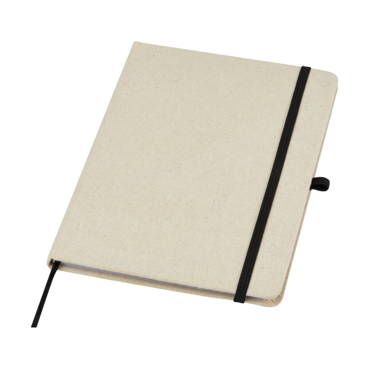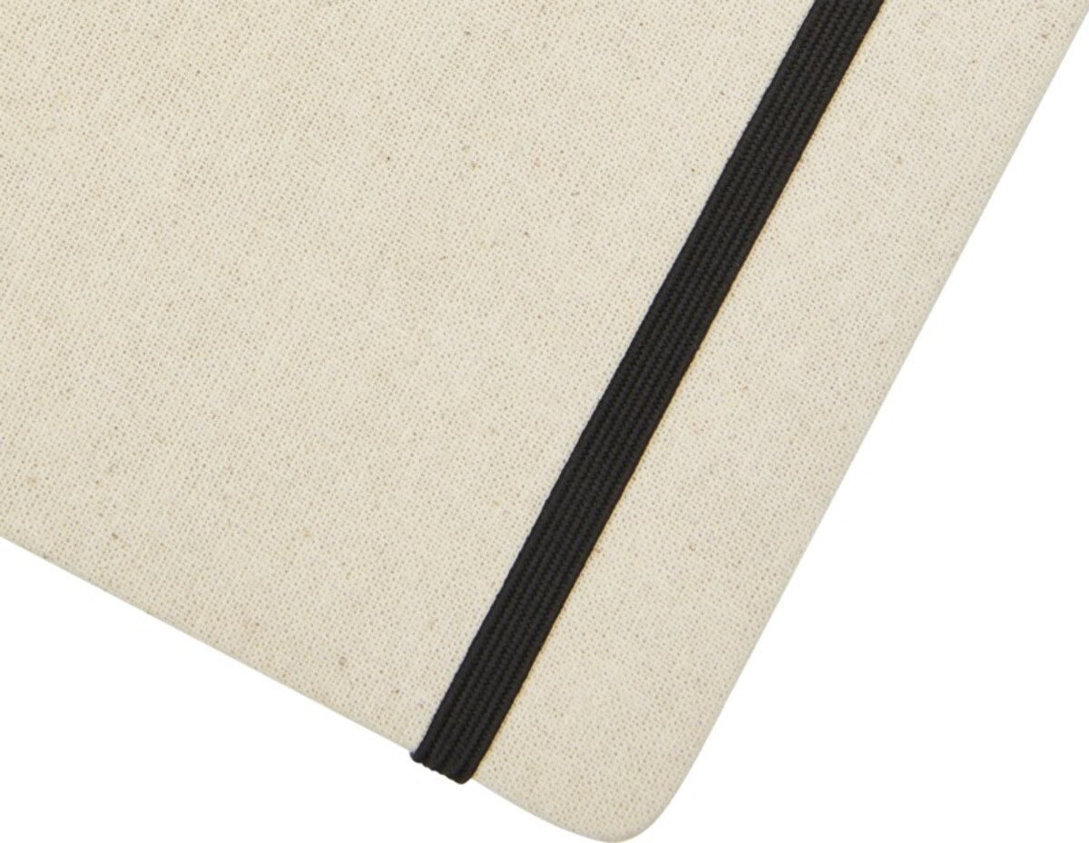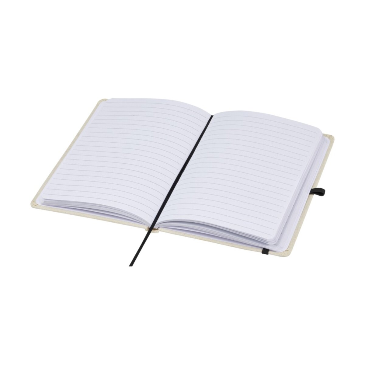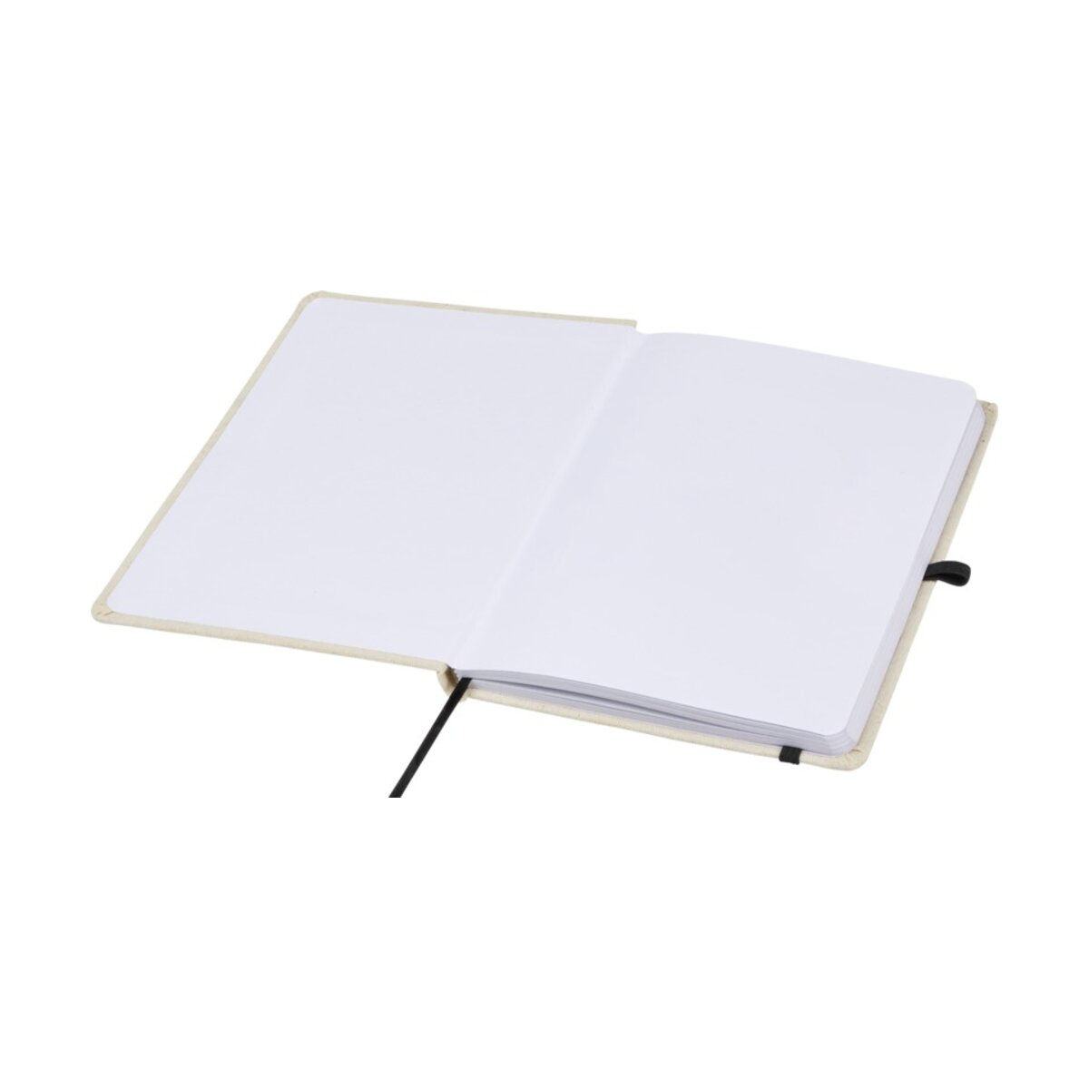 Notatnik z bawełny organicznej o zawierający 120 stron w linie o gramaturze po 70 g/m2 z białego papieru z recyklingu. Posiada czarną wstążkę, elastyczne zamknięcie i pętelkę na długopis. Bawełna organiczna jest uprawiana przy użyciu zrównoważonych praktyk rolniczych, które pomagają chronić środowisko i promować różnorodność biologiczną. Unikanie stosowania szkodliwych chemikaliów w procesie uprawy bawełny organicznej może przyczynić się do zmniejszenia zanieczyszczenia gleby i wody, a także ograniczyć ryzyko wystąpienia problemów zdrowotnych rolników i ich rodzin.