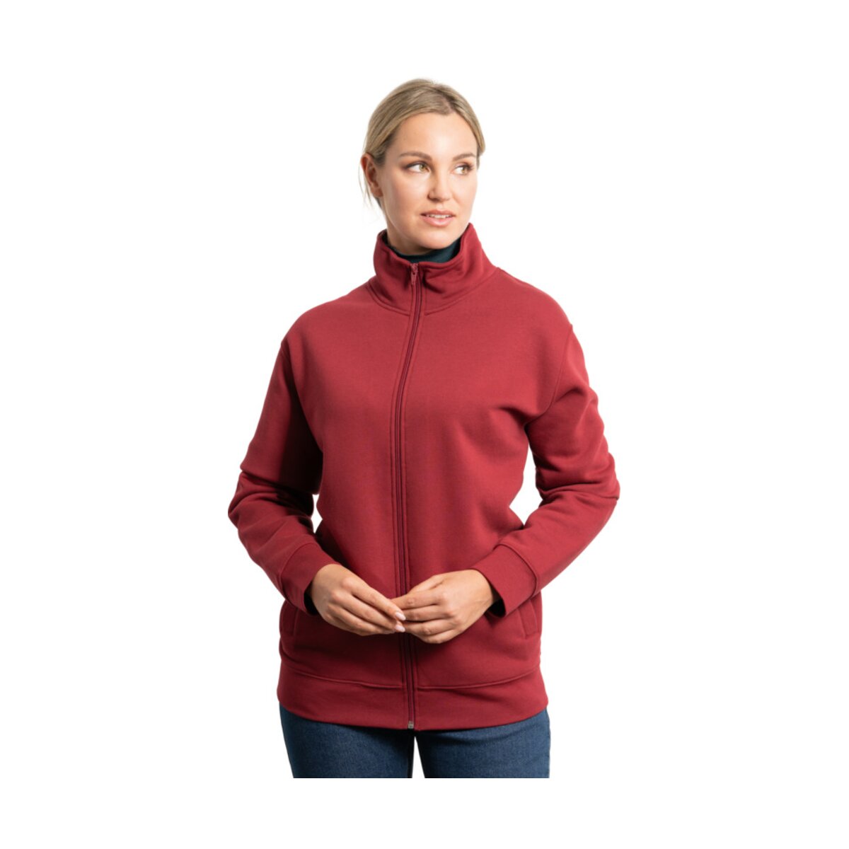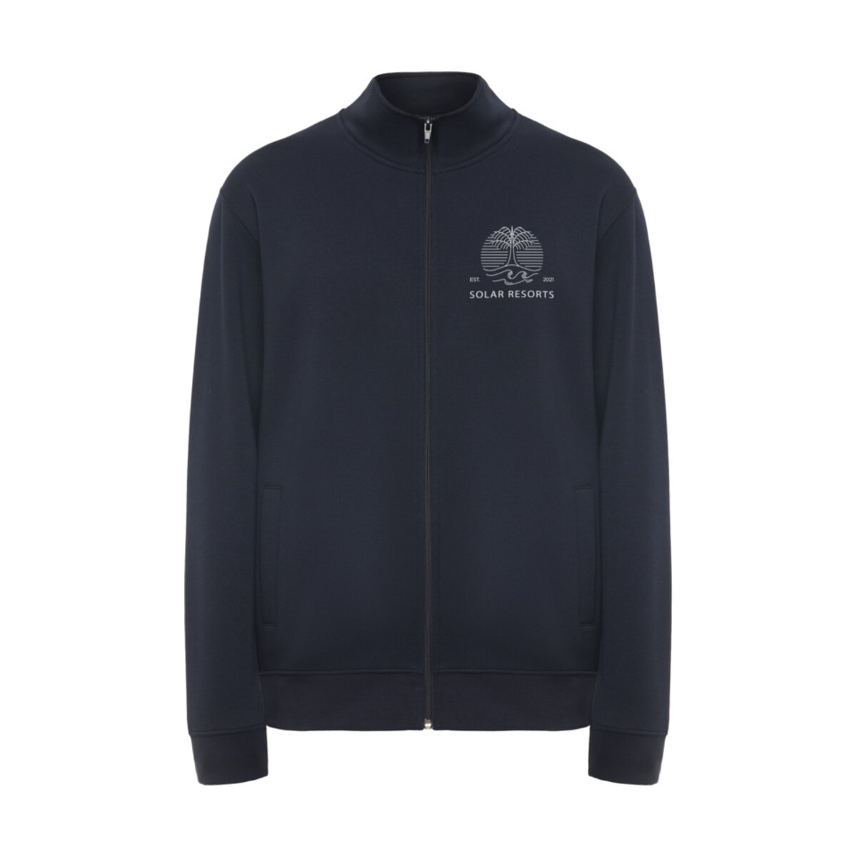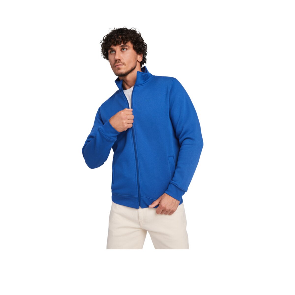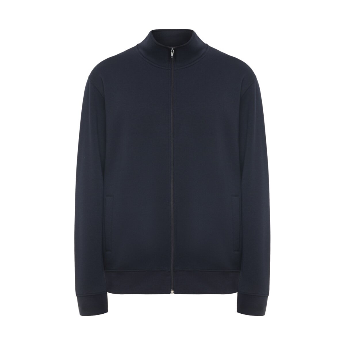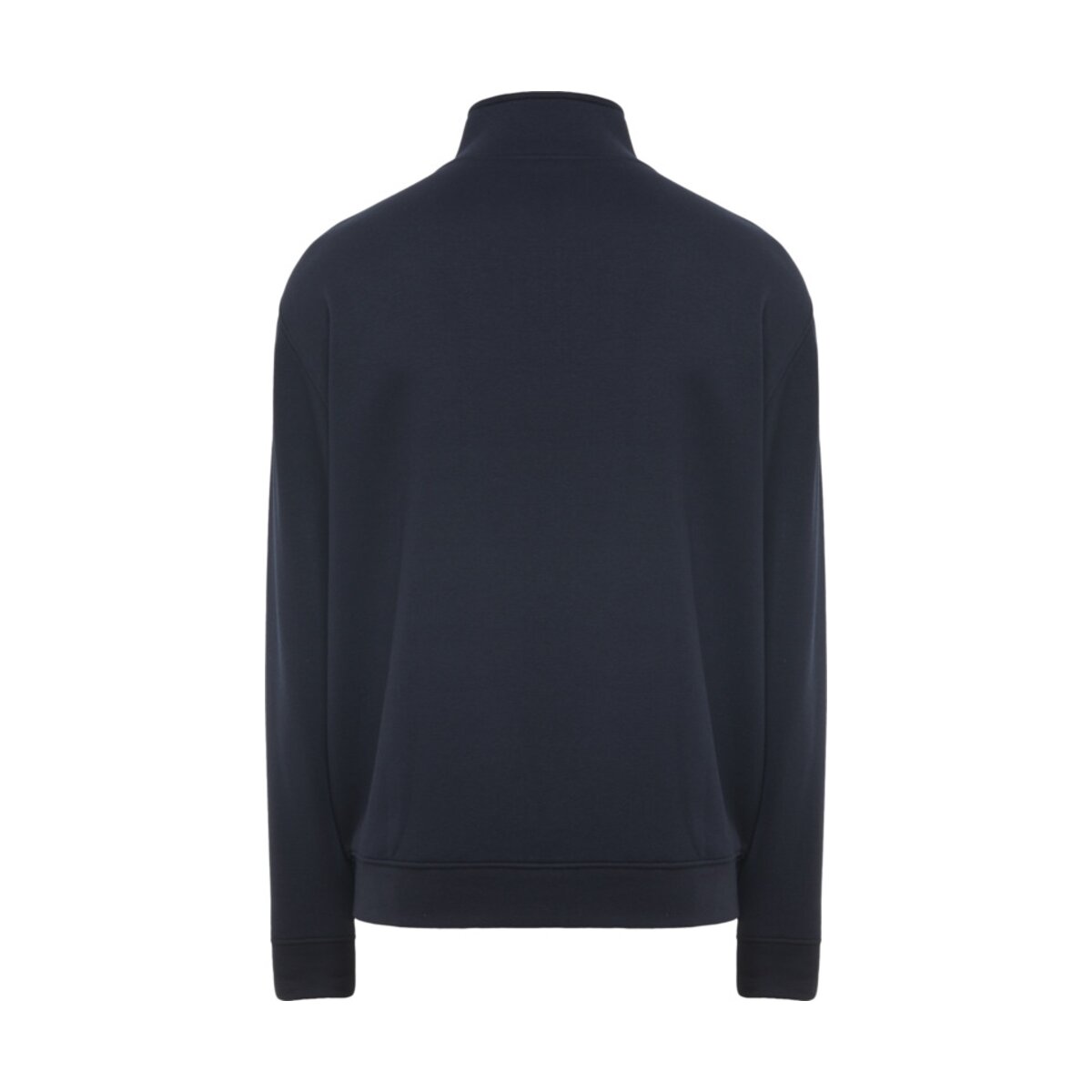 Sweter z wysokim kołnierzem i dopasowanym zamkiem błyskawicznym. Dopasowany wewnętrzny kołnierz ze wzmocnionymi krytymi szwami. Ściągacze 1×1 w mankietach i talii. Usuwalna metka.