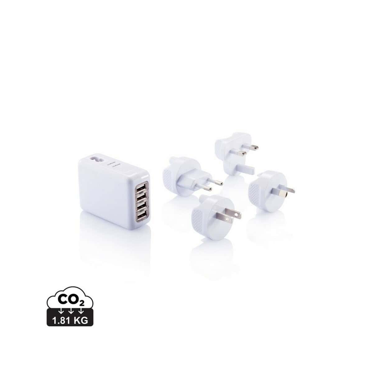 Uniwersalna ładowarka, adapter podróżny to wyśmienity towarzysz wszystkich służbowych i prywatnych wyjazdów 😊. Kompaktowy korpus o wymiarach 7,5 x 5,5 x 2,9 cm, z trwałego materiału ABS, waży jedynie 150 g, dzięki czemu zmieści się w każdej kieszeni walizki czy plecaka. Urządzenie oferuje 4 wyjścia USB i dużą moc ładowania 3.1 A, a zakres AC Max 240 V / 350 mA pozwala bezpiecznie podpiąć sprzęt w ponad 150 krajach. W zestawie otrzymujesz 4 końcówki dopasowane do najpopularniejszych gniazdek oraz eleganckie etui, które chroni adapter w podróży. Ślad węglowy produktu wynosi zaledwie 1,81 kg CO₂, co czyni go przyjaznym środowisku 🔌.