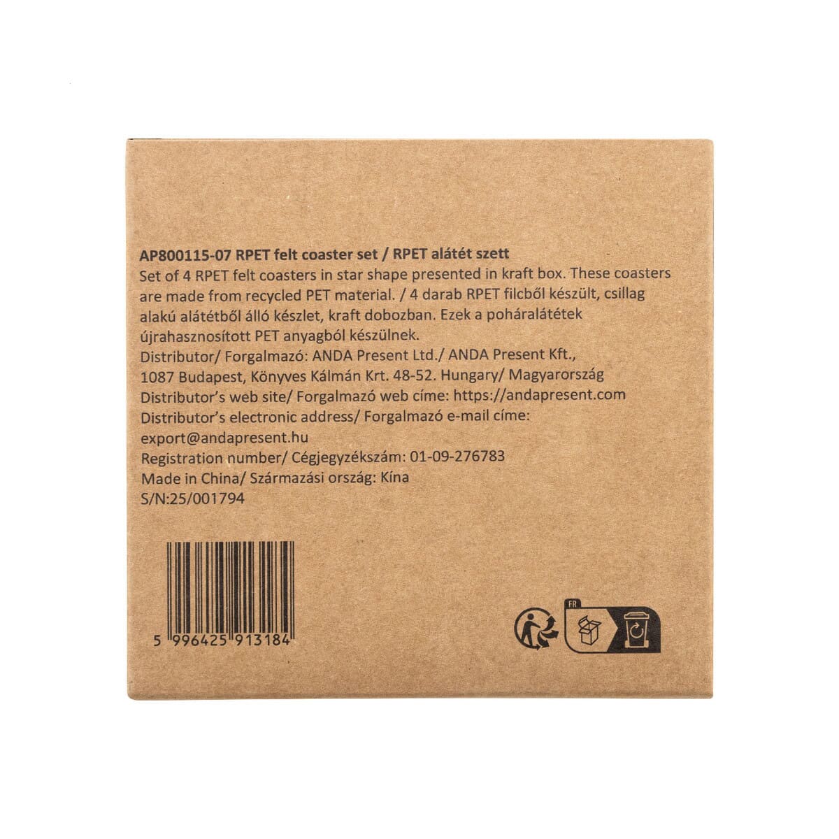 Vagnes Zestaw podkładek świątecznych RPET to propozycja, która wprowadzi magiczny klimat Bożego Narodzenia wszędzie tam, gdzie liczy się smak, estetyka i ekologia. Cztery filcowe gwiazdki o wymiarach 110×110×20 mm i wadze zaledwie 280 g wykonano z Filcu PET z recyklingu, a następnie zamknięto w eleganckim, kraftowym pudełku – gotowym do wręczenia jako gadżet firmowy. Wybierz klasyczną czerwień lub butelkową zieleń i podkreśl charakter świątecznego stołu dzięki indywidualnemu nadrukowi lub dyskretnemu logo swojej marki ✨