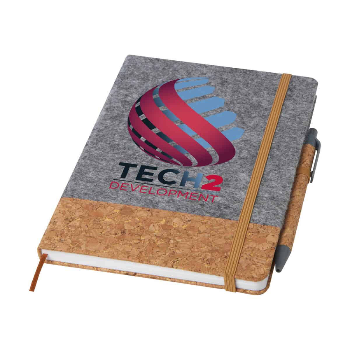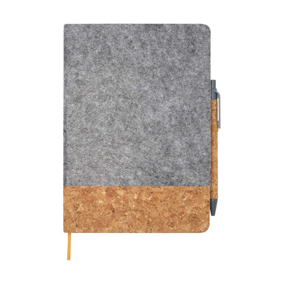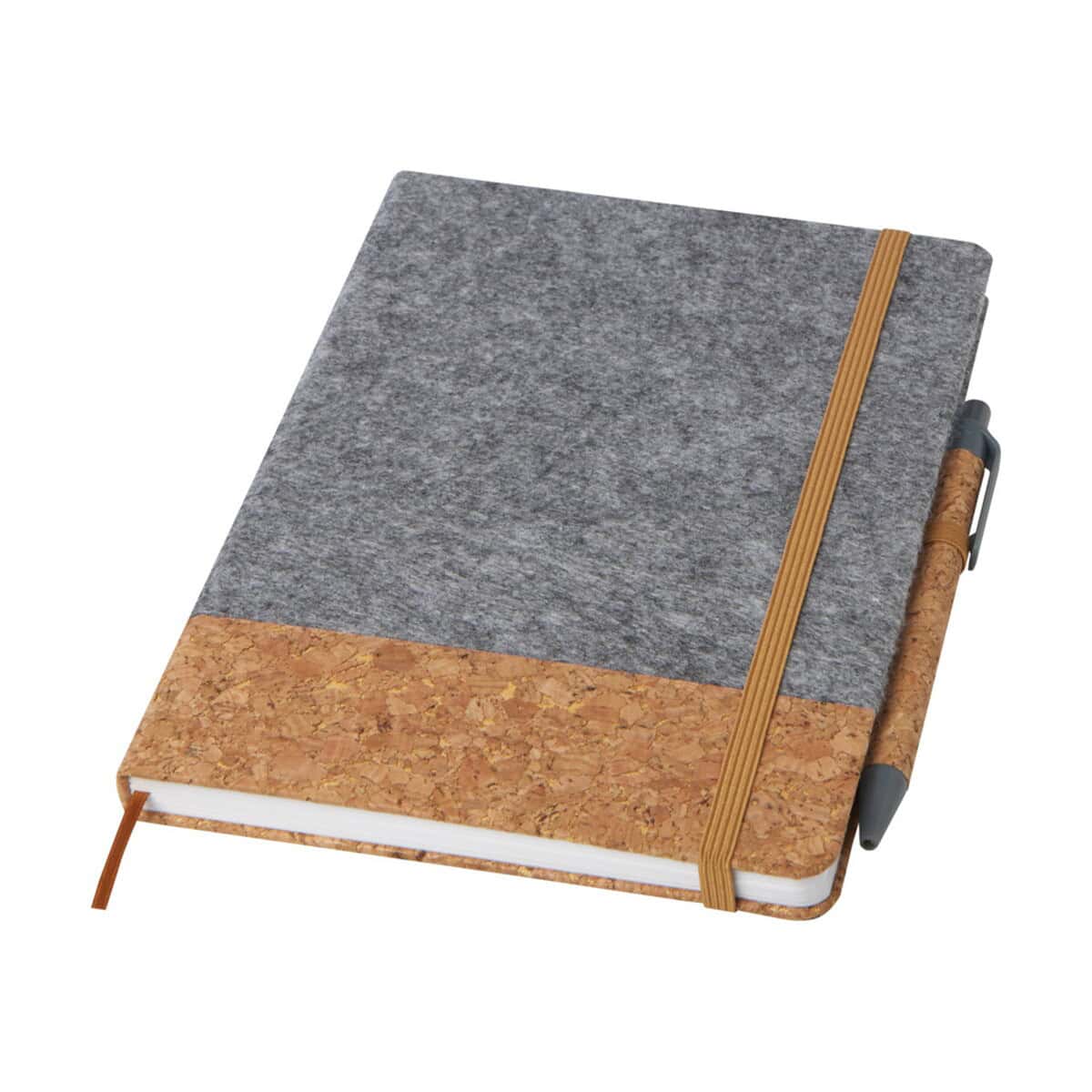 Veronica notatnik A5 w twardej okładce to niezwykle funkcjonalny, a zarazem stylowy gadżet biurowy, który natychmiast przyciąga wzrok naturalnym połączeniem korka i filcu pochodzących z recyklingu. Format 21 x 14,6 cm i lekka waga 245 g sprawiają, że znakomicie mieści się w torbie, plecaku czy aktówce, więc możesz mieć go zawsze pod ręką 😊. Aż 80 gładko otwierających się kartek w linie o gramaturze 70 g/m² gwarantuje przyjemne pisanie, a elastyczne zamknięcie chroni notatki przed zagnieceniem. Praktyczna tasiemkowa zakładka oraz pętelka na długopis zapewniają perfekcyjny porządek, a dołączony długopis z korpusem z korka (żywotność 600 m, stalówka 1,0 mm, czarny tusz) tworzy spójny, ekologiczny zestaw.